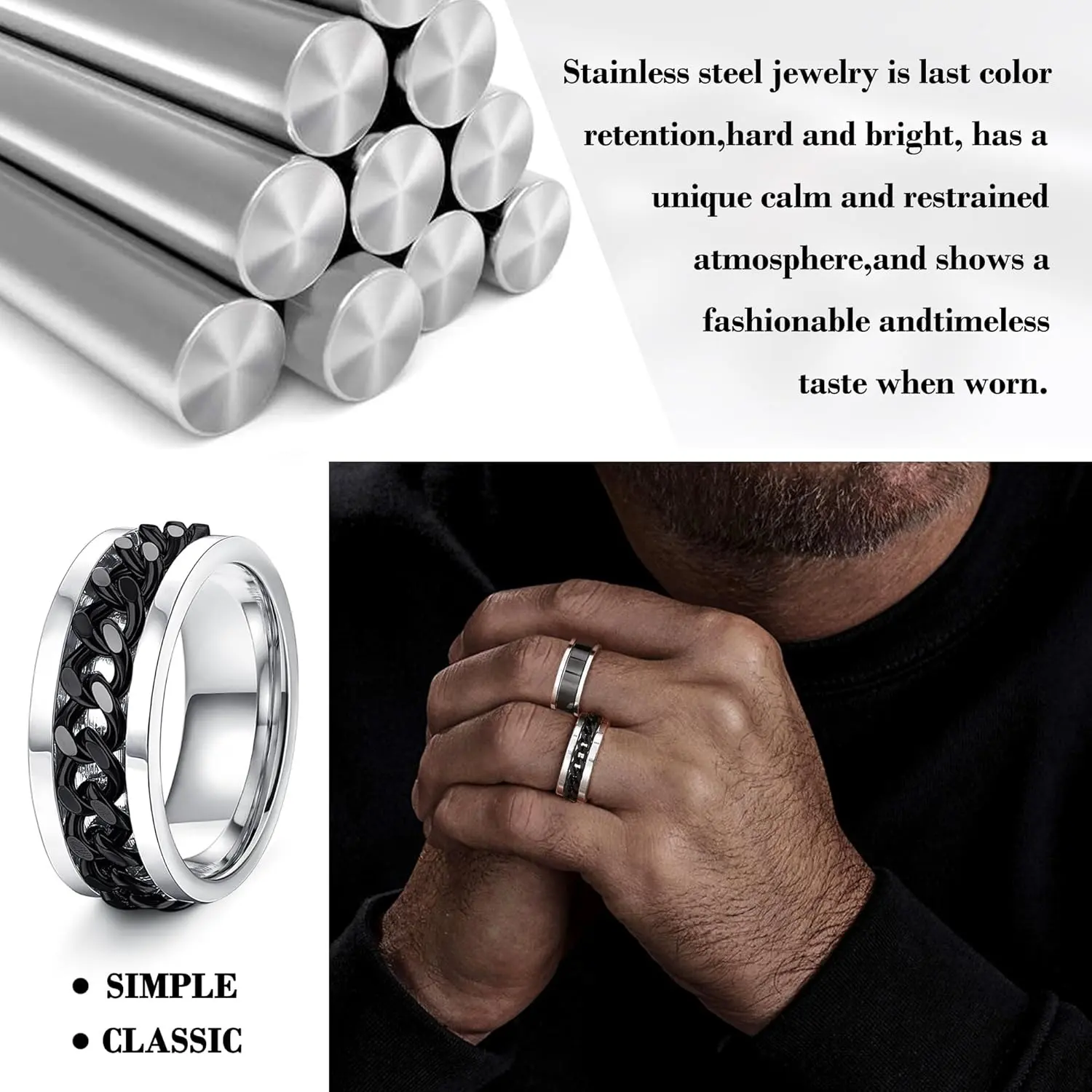 ·️RECOMMENDED GIFT: Polished and matte finish, masculine and cool, including rotating rings, anxiety rings. It can also be used as a couple of rings, wedding rings, engagement rings, promise rings, etc. Can be a great gift given to someone who is important to you.