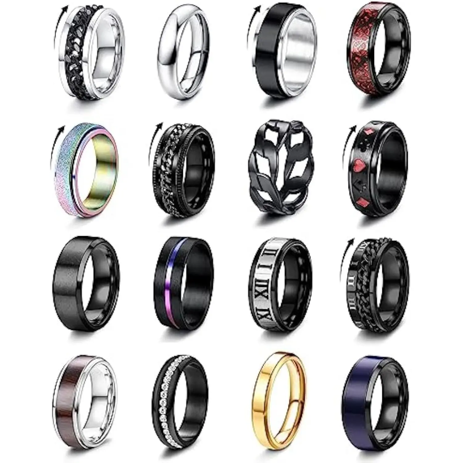 ·️FIDGET RINGS PACK: 16 pcs in a set, 6 pcs spinner rings, 10 pcs simple rings. Anxiety rings can help you relieve stress, improve mood, more styles provide more choices for your daily wear.