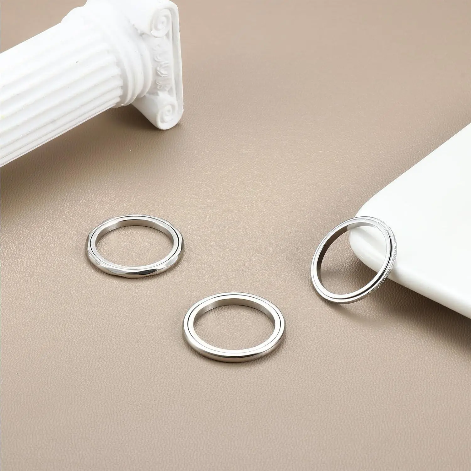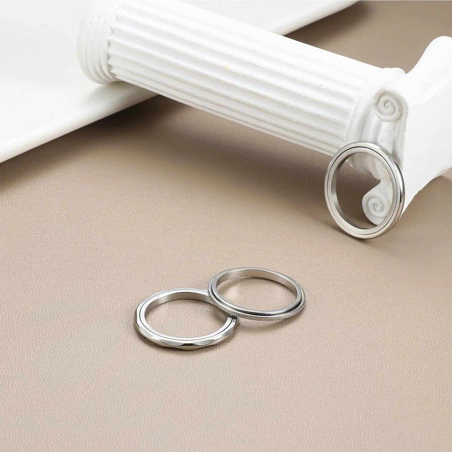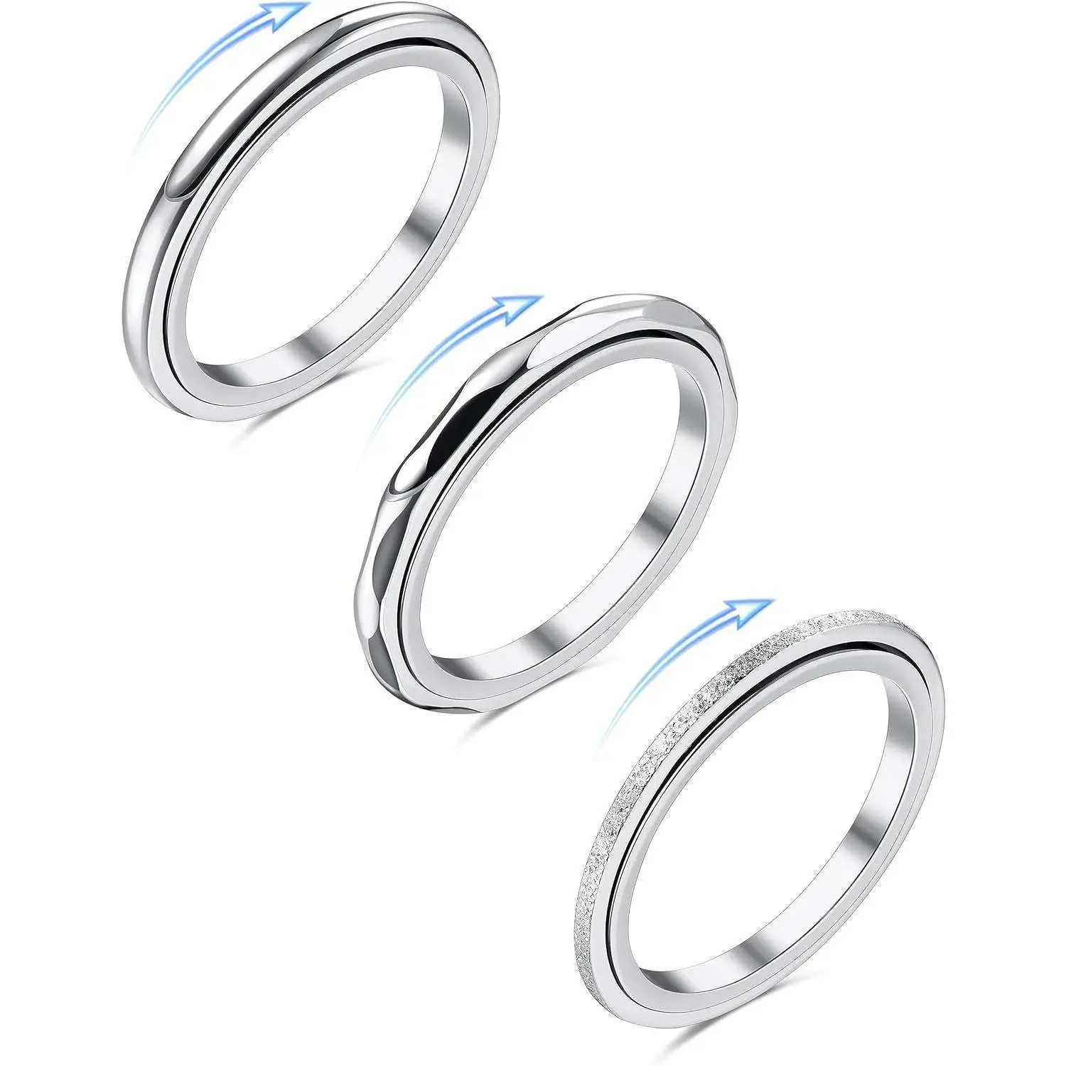 FLORIDECO 3Pcs Stainless Steel Rings Set Fidget Ring Womens Rings Anxiety Rings Anti Stress Ring Band Rings Thumb Rings Silver Rings for Women Spinner Ring Fidget Ring for Anxiety Women Men Daily