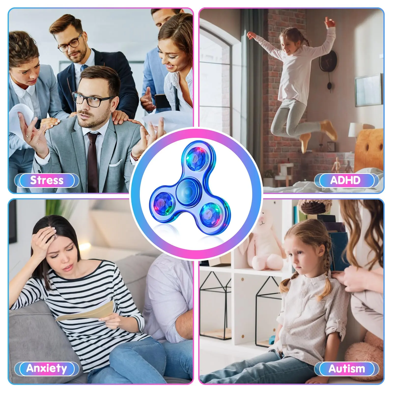 ·Durable and Sturdy Material: The LED light up fidget spinner is made of high-quality crystal ABS material BPA free. The premium steel bearing provides much smoother and less noise experience while spining