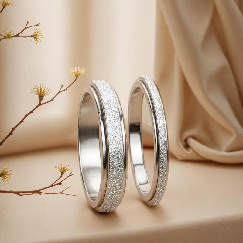 Fidget Rings for Women Men - 2 4mm Titanium Steel Spinner Ring for Anxiety Stress Relief Glitter Sandblast Spinning Figit Anxiety Jewelry for Women Gifts