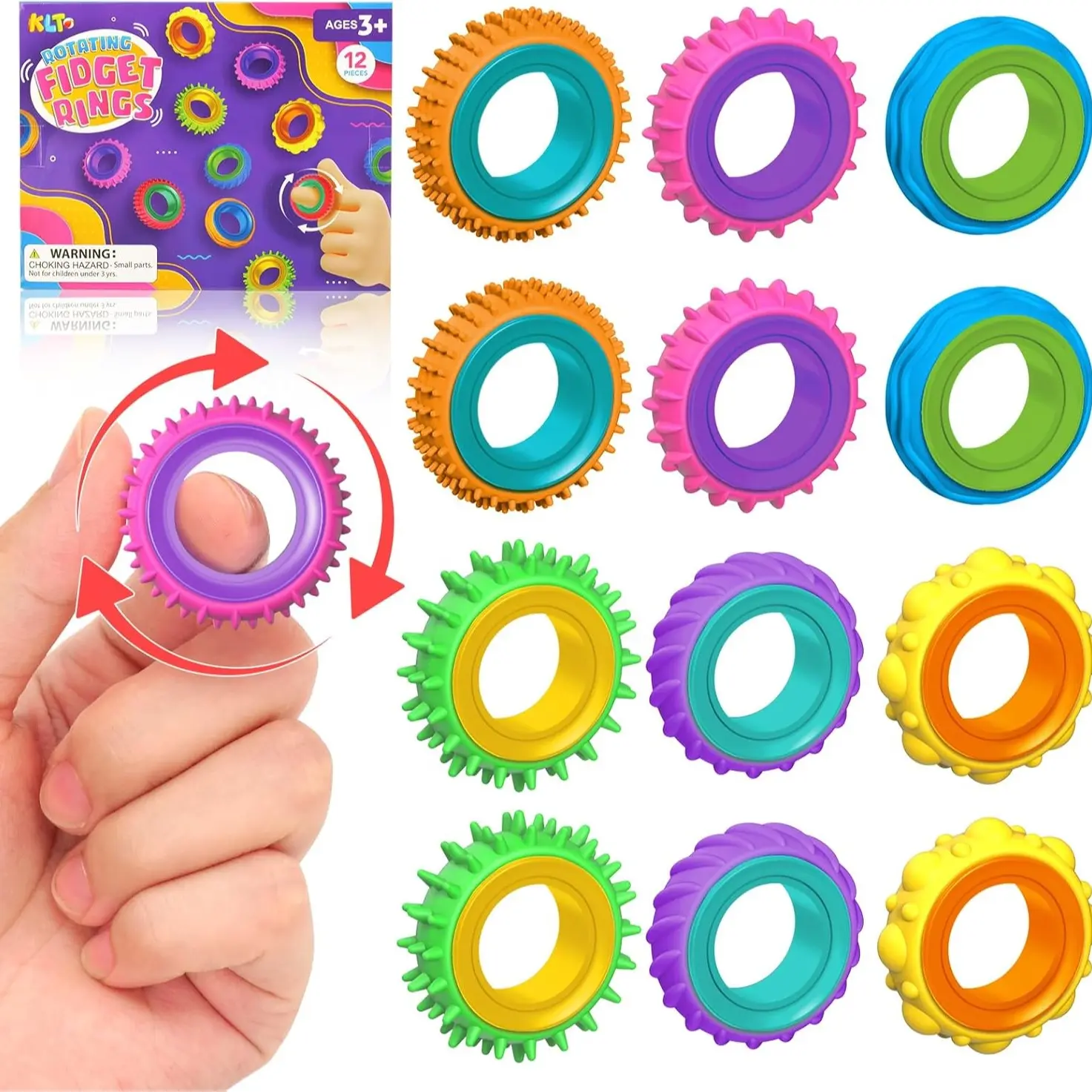 ·Material: Silicone fidget rings with a rolling inner ring made of plastic.
