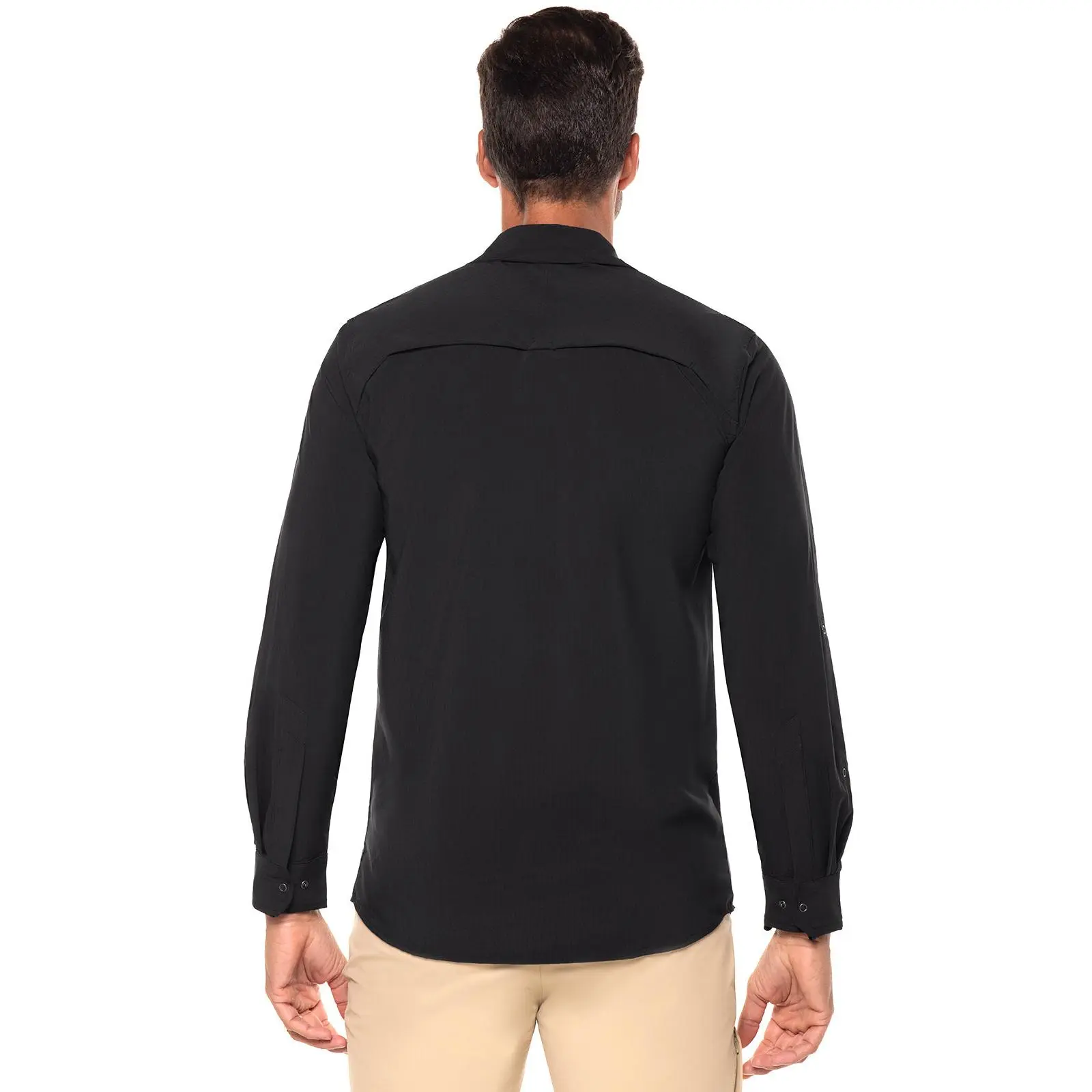 ·Roll-up sleeves with hidden snap buttons
