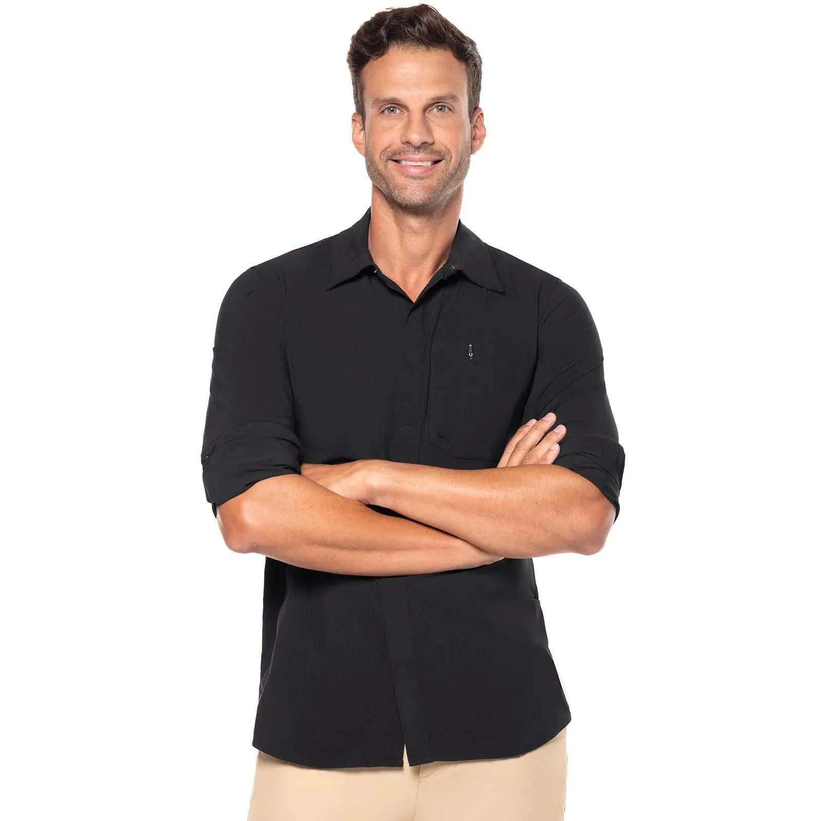 The Fiera Smart Shirt is your new travel must-have. Made with soft, high-tech Solayo™ fabric, it’s designed to handle everything your trip throws at you. With an RFID-blocking pocket, a sunglasses holder, and a microfiber lens cleaner, it’s perfect for airport travel, sightseeing, or exploring outdoors. Hidden snaps and adjustable cuffs offer additional coverage so you can stay comfortable from morning walks to afternoon adventures.