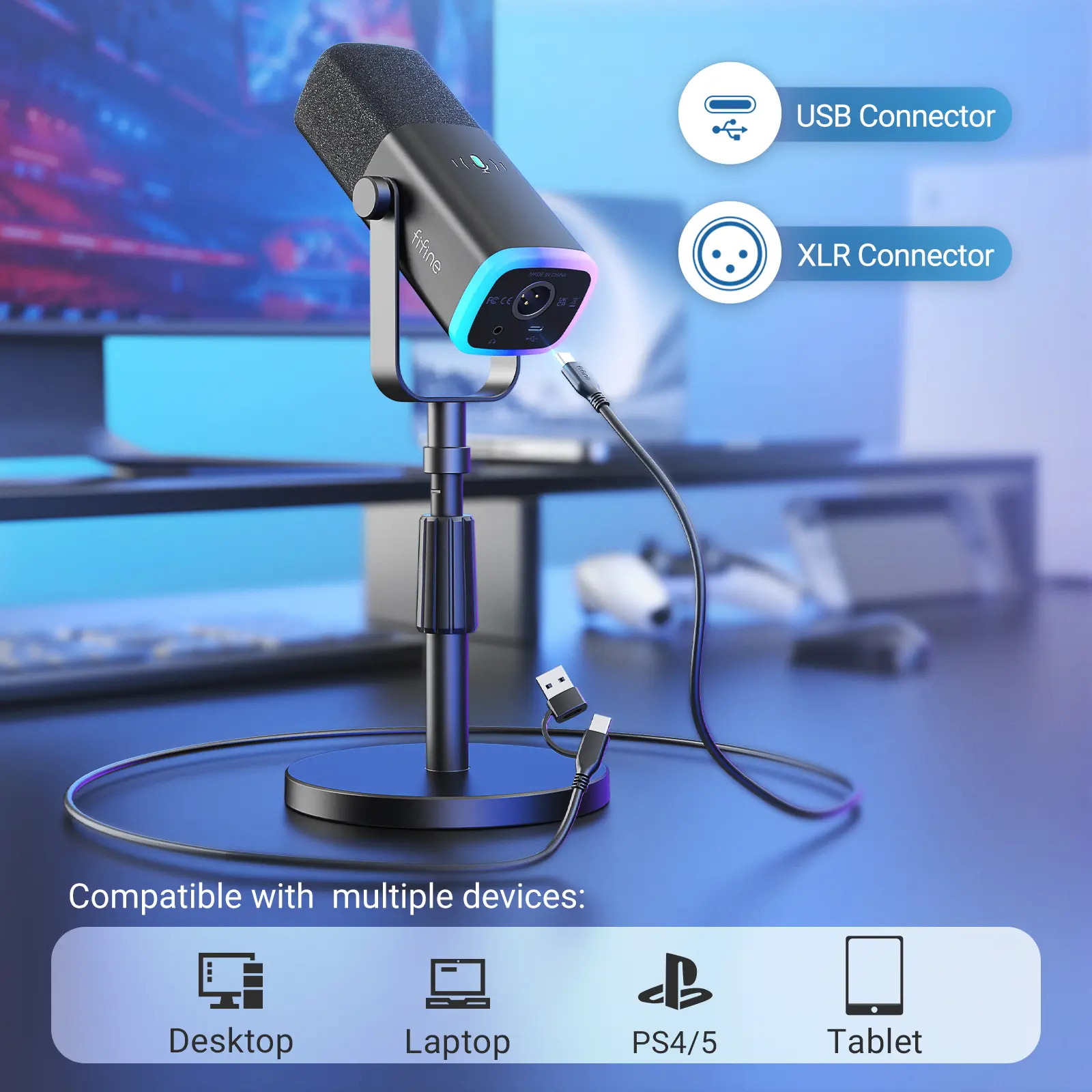 ·[USB Connection with Handy Mute] Skip the hassle of setting something up and plug the cable to play the dynamic USB microphone directly, which suits for beginner creators or daily podcast. You can quickly control USB podcast microphone dynamic with tap-to-mute that is independent of computer/Macbook programs to keep privacy when live streaming. LED mute reminder helps you get rid of forgetting to cancel the mute. (Only available for USB connection)