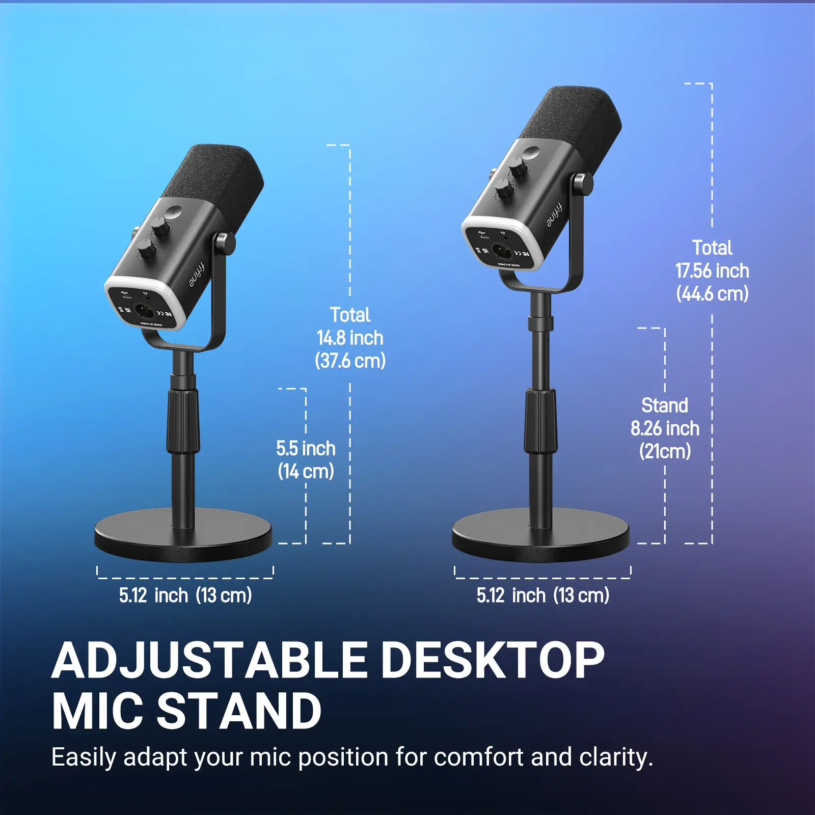 ·[Adjustable Height] Simply twist the clutch knob to loosen or tighten the desk mic stand, then smoothly raise or lower your mic position. Adjust the height of desktop microphone stand from 5.5” to 8.26”. Easy to adjust yet locks firmly in place-once tightened, the desk microphone stand will stay perfectly secure with zero slippage or falling down.
