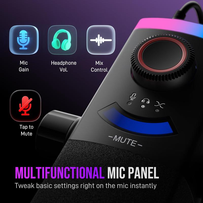 ·[Monitoring and Multifunctional Dial] Monitor your vocal mic and PC audio together in real-time no guessing. Adjust the Mix Control to balance the rhythm of background music and commentary when Let's Play, or lower mic level to focus on muffled podcast co-hosts. The silent 3-in-1 knob can be fine-tuned gain and headphone volume on the USB microphone with boom arm.