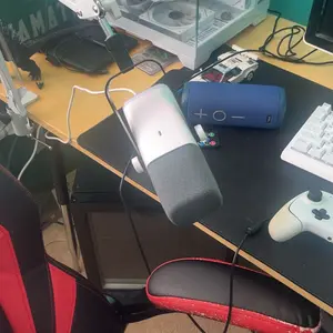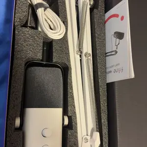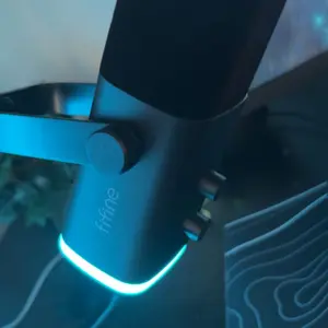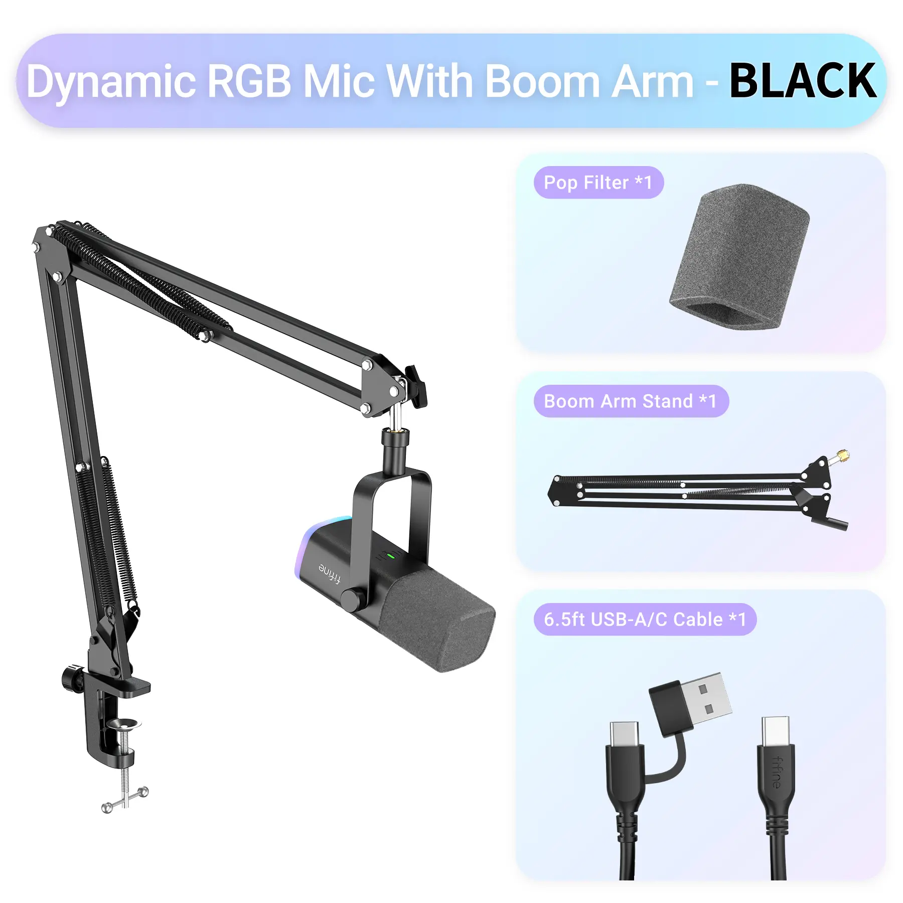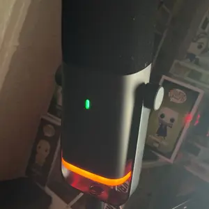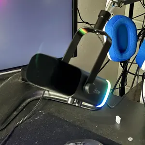 Includes a boom arm, tap-to-mute button, gain knob, and headphone jack with volume control.