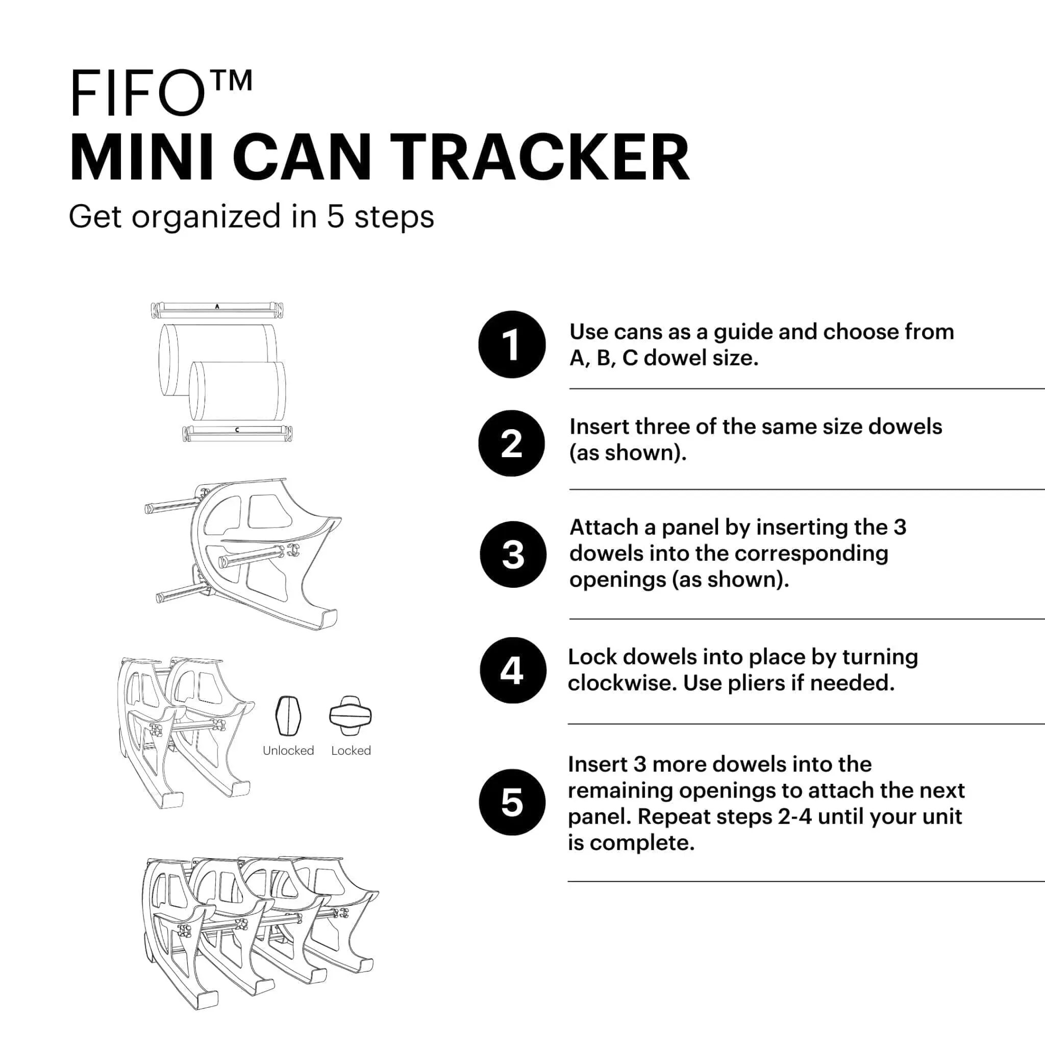 The FIFO™ Mini Can Tracker stores and rotates your cans first in, first out, so you won’t have to worry about expiration dates again!
