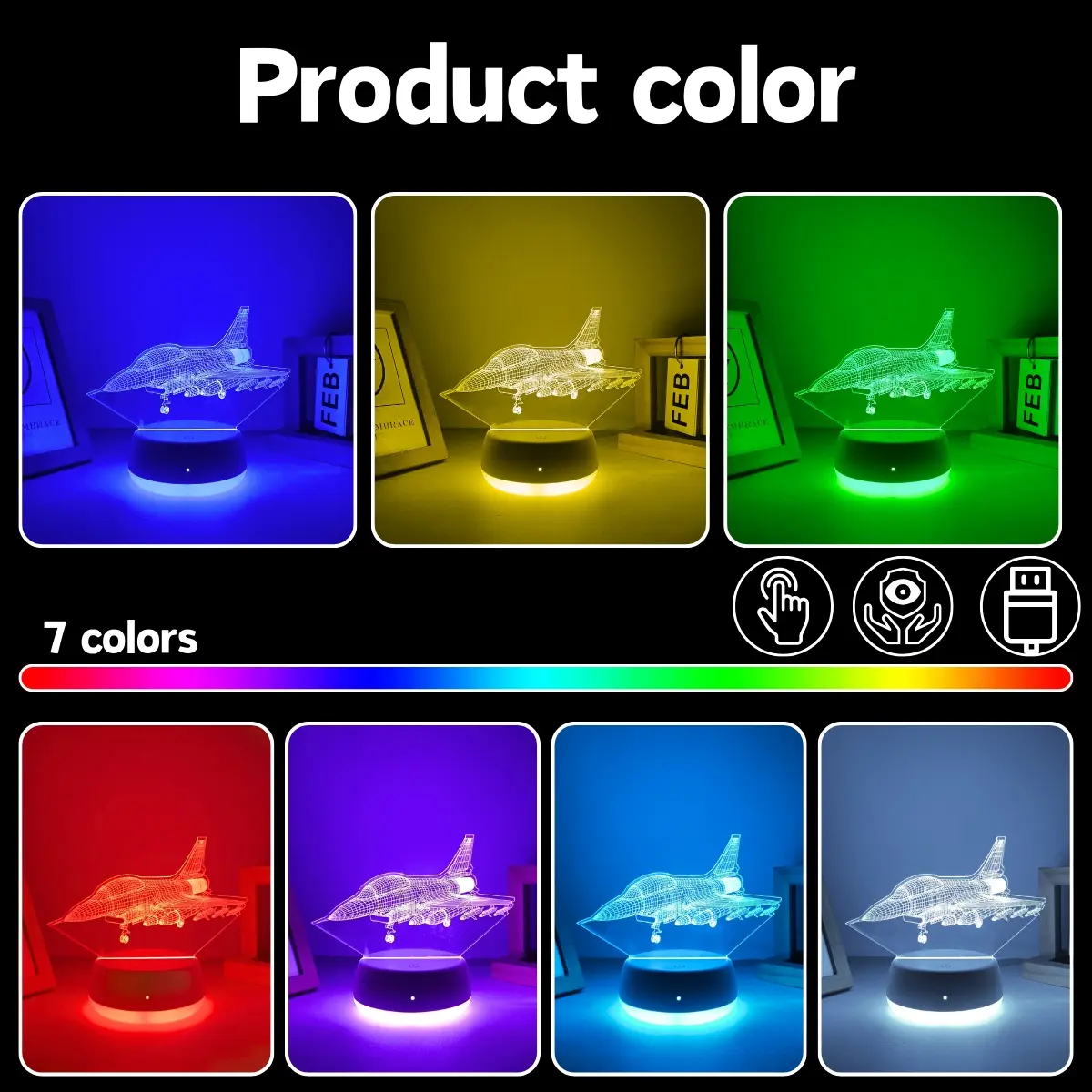 I got this for my boyfriend for our 2 year anniversary. It is very cute but the USB cord is kind of short so you would have to place on a surface near an outlet when plugged in. There are 3 color modes that change when you press the switch on/off and they all look good!