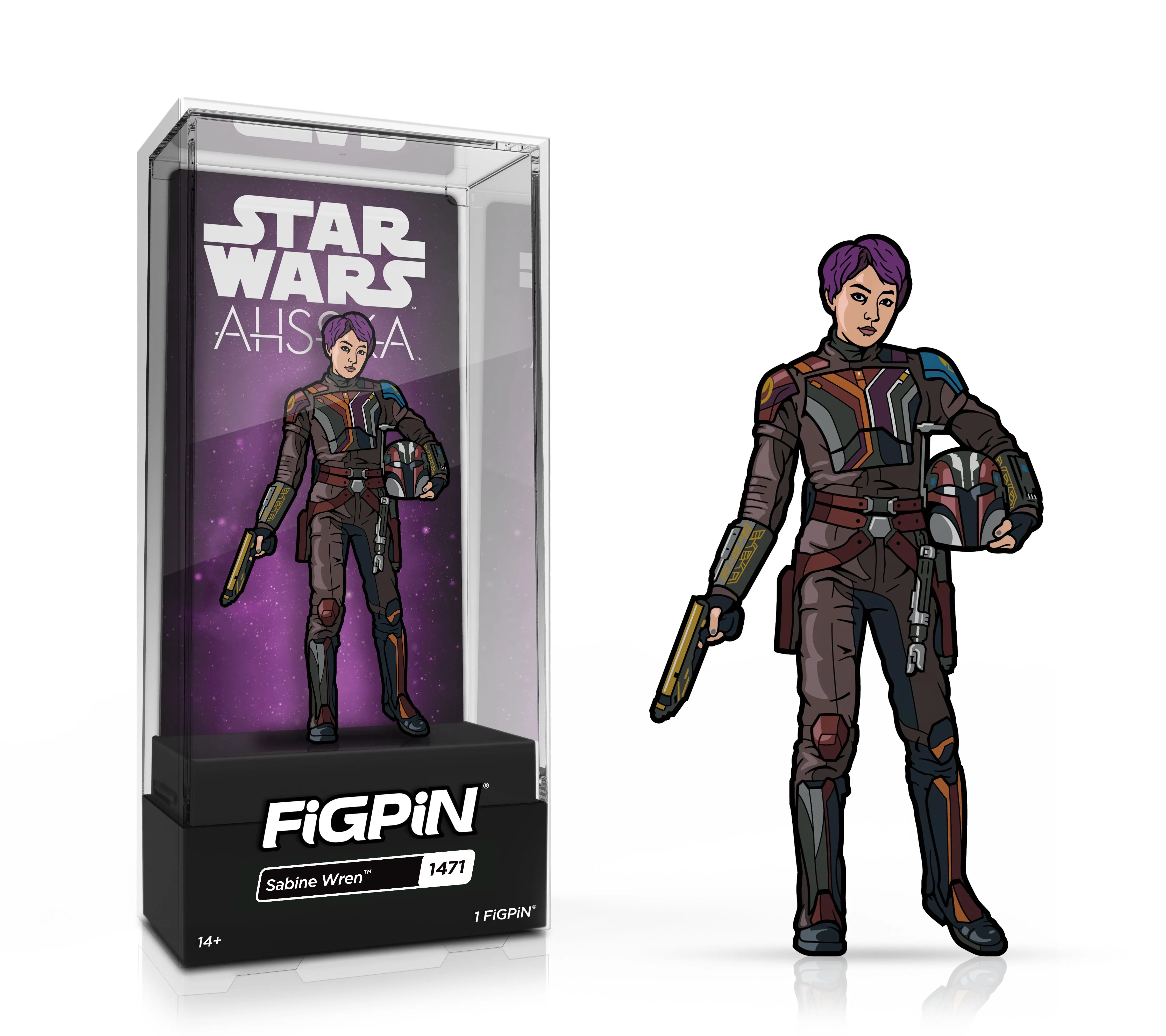 FiGPiN - Star Wars - Sabine Wren 1471 "Join the rebellion with this stunning FiGPiN featuring the fearless Sabine Wren from Star Wars! Crafted with meticulous attention to detail, this pin is a must-have for any fan of the galactic franchise." "Experience the thrill of the rebellion with this stunning FiGPiN portraying the fearless Sabine Wren from Star Wars! With an unwavering devotion to detail, this pin serves as a must-have for die-hard fans of the galactic franchise. Embrace the power of the Force and add this pin to your collection today!"
