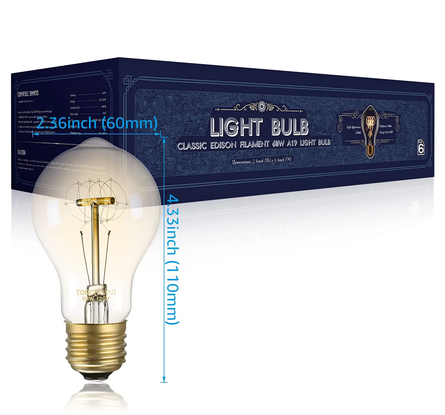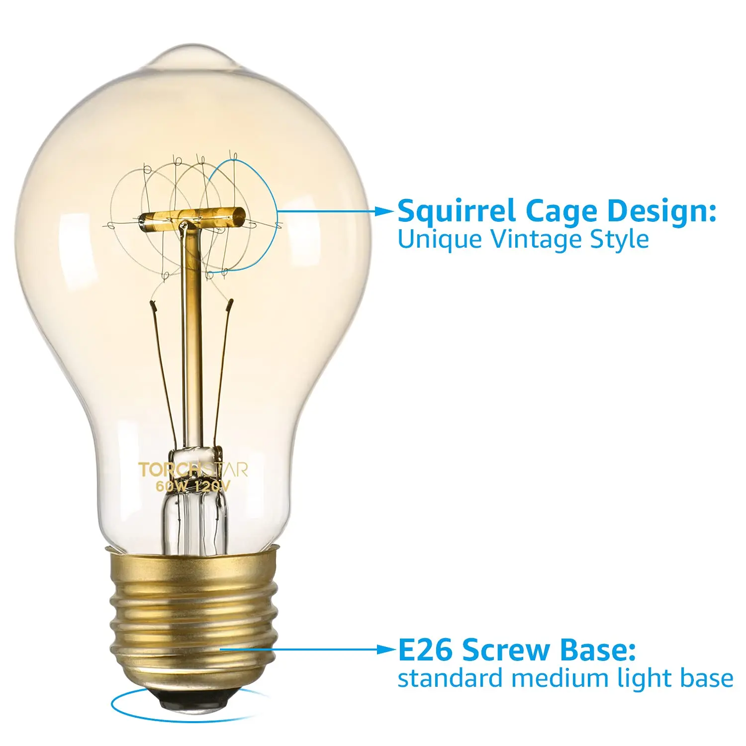 The TorchStar A19 light bulb is a vintage-inspired 60W bulb, perfect for creating a nostalgic atmosphere. Its amber glass and warm 2700K soft white light combine to offer a delightful glow and a captivating aesthetic. It offers smooth dimming and works with a variety of fixtures.