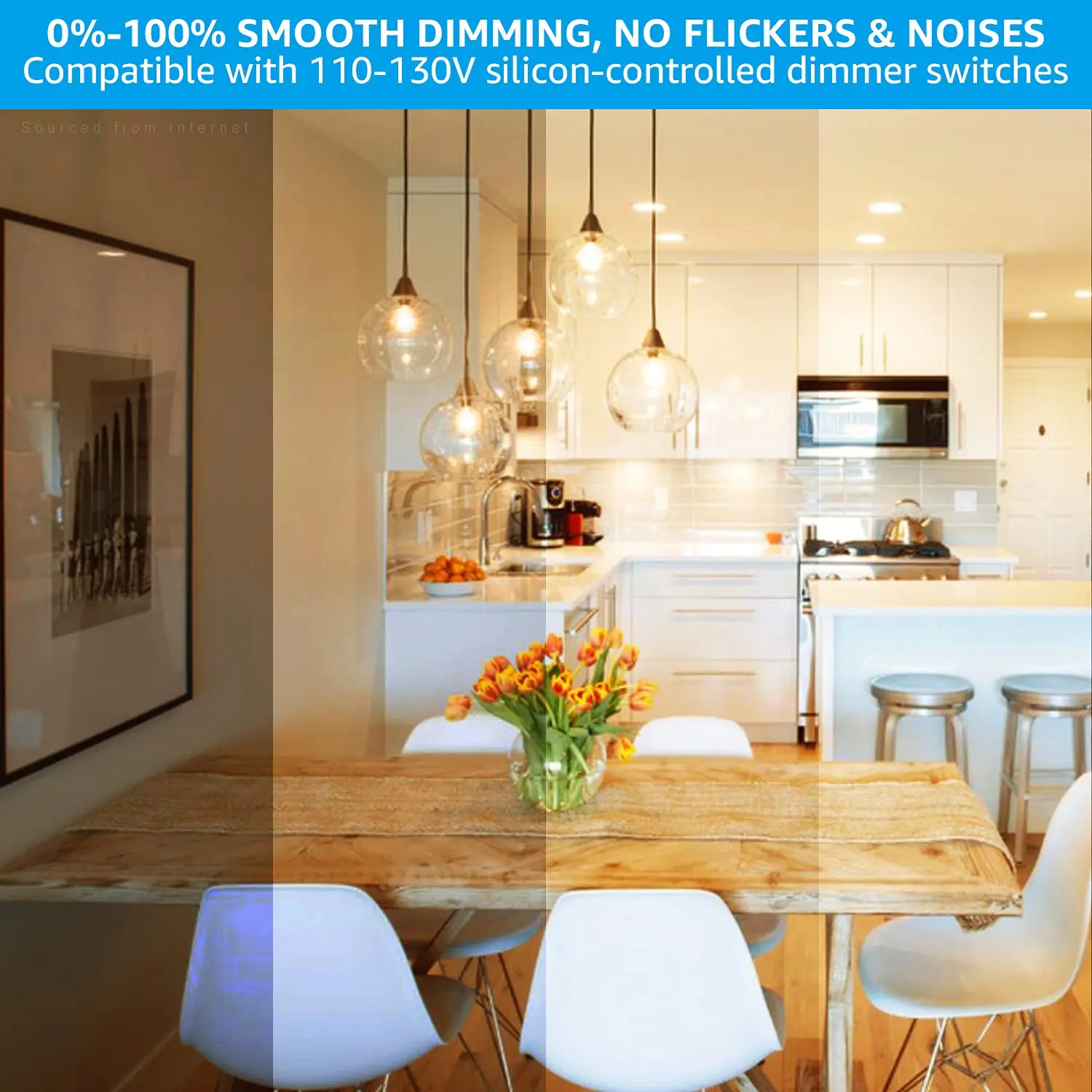 ·The bulb is fully dimmable from 0% to 100%.