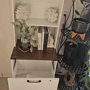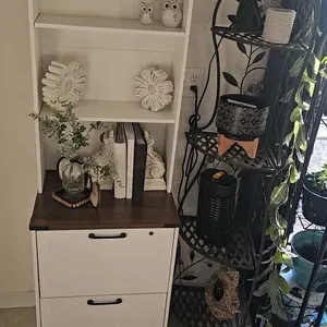 • Ample Storage: 19.7"L x 15.7"W x 65"H, shelves hold files, printers, and more. • 2 Drawer File Cabinet: Supports letter, legal, and A4 hanging files. • Multi-Purpose Use: Functions as a file cabinet, bookshelf, printer stand. • Farmhouse Style: Sophisticated design adds charm to your home. • Easy Assembly & Safety: Labeled parts, anti-tip kit included, and after-sales service.