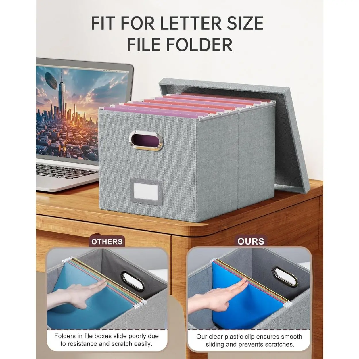 ·Clear Sliding Bars: Every file storage box has two Clear sliding bars, Easy to slide file folders with no friction, and protecting the edge of the box, Make your file box beautiful and durable.