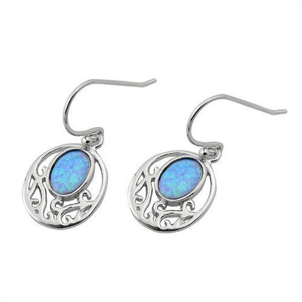 Sterling Silver Filigree Dangle Light Blue Opal Earrings