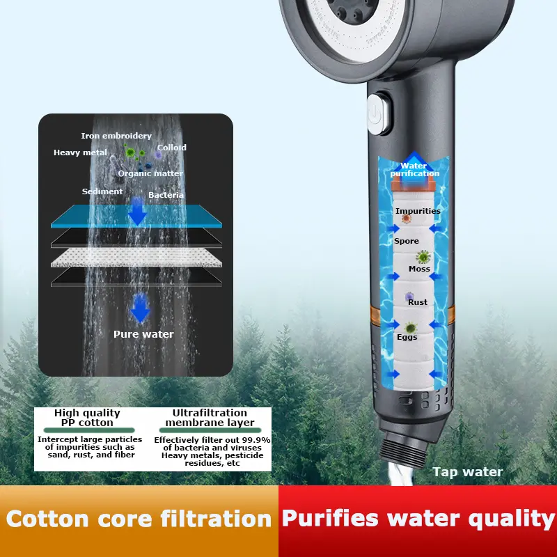 âĄUpgraded Filtered Showerhead: This showerhead features an ultra-long filter cotton core that effectively removes 99.99% of chlorine, reducing dryness and irritation to the skin and hair. It also softens hard water, preventing damage to both skin and hair.