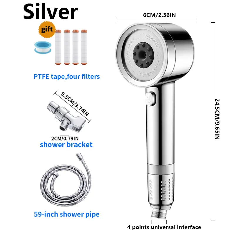 â High-pressure Handheld ShowerheadïŒThis handheld showerhead uses micro-bubble pressure technology to boost water pressure, delivering a powerful flow. Over 100 small, closely spaced nozzles ensure stable water flow, saving up to 30% water, while providing a strong spray for a soothing massage.