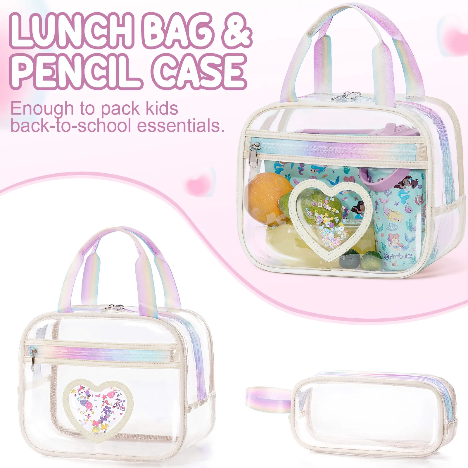 Fimibuke 17.5'' Clear backpack with lunch box & pencil case is a great choice , which not only provides plenty of space to pack everything we need in the school, but also can help pass through security checks quickly and keep essentials in clear view.
