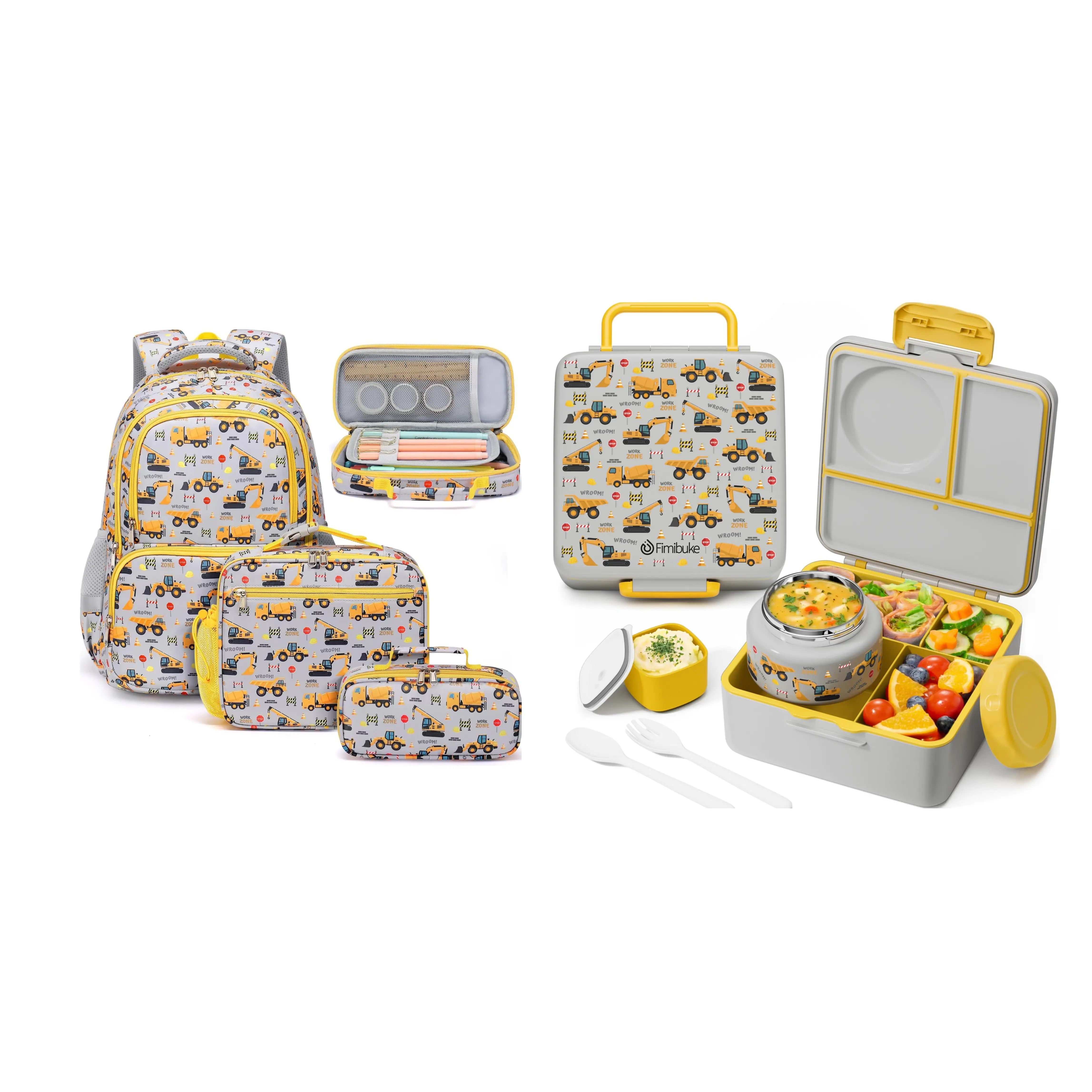 Fimibuke Backpack for School Boy Girl, 3PCS Waterproof School Bag Cute Bookbag Set with Lunch Box & Pencil Case for School Student