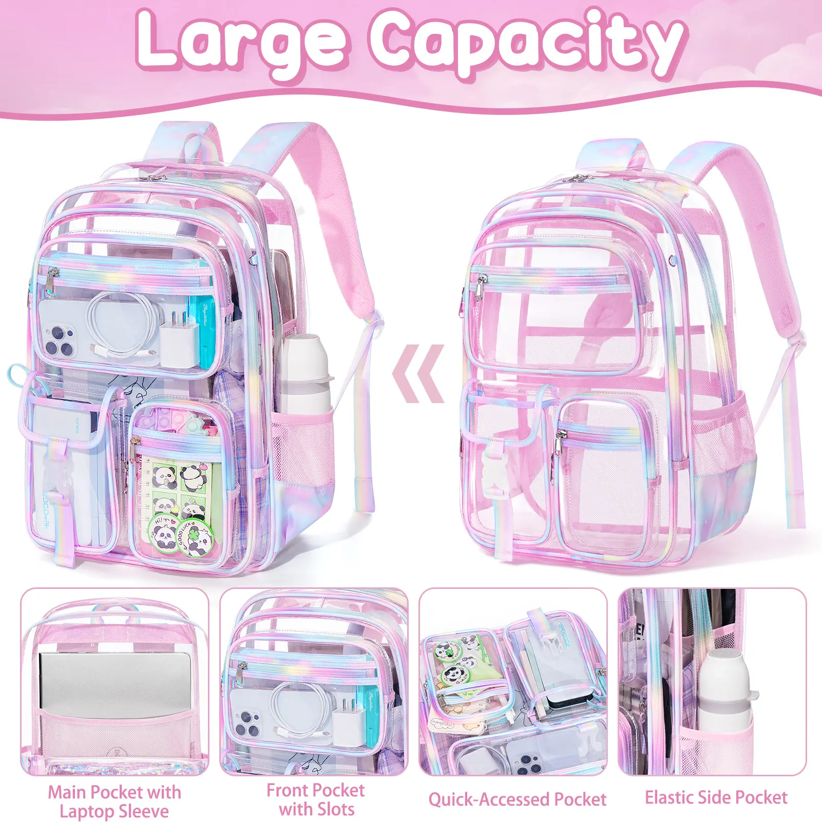 Clear Backpacks: Applicable to various scenes that require clear bag security checks, such as schools, stadiums, concerts, subways, airports etc, enabling us to pass through security checks quickly.