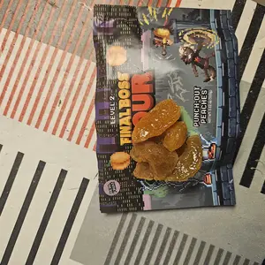 First final boss product and was very impressed with the fast shipping, and the quality of the peaches. The taste mix with sour but also a wave of sweet which I enjoyed, also there was a decent a amount I ate several before snapping a picture