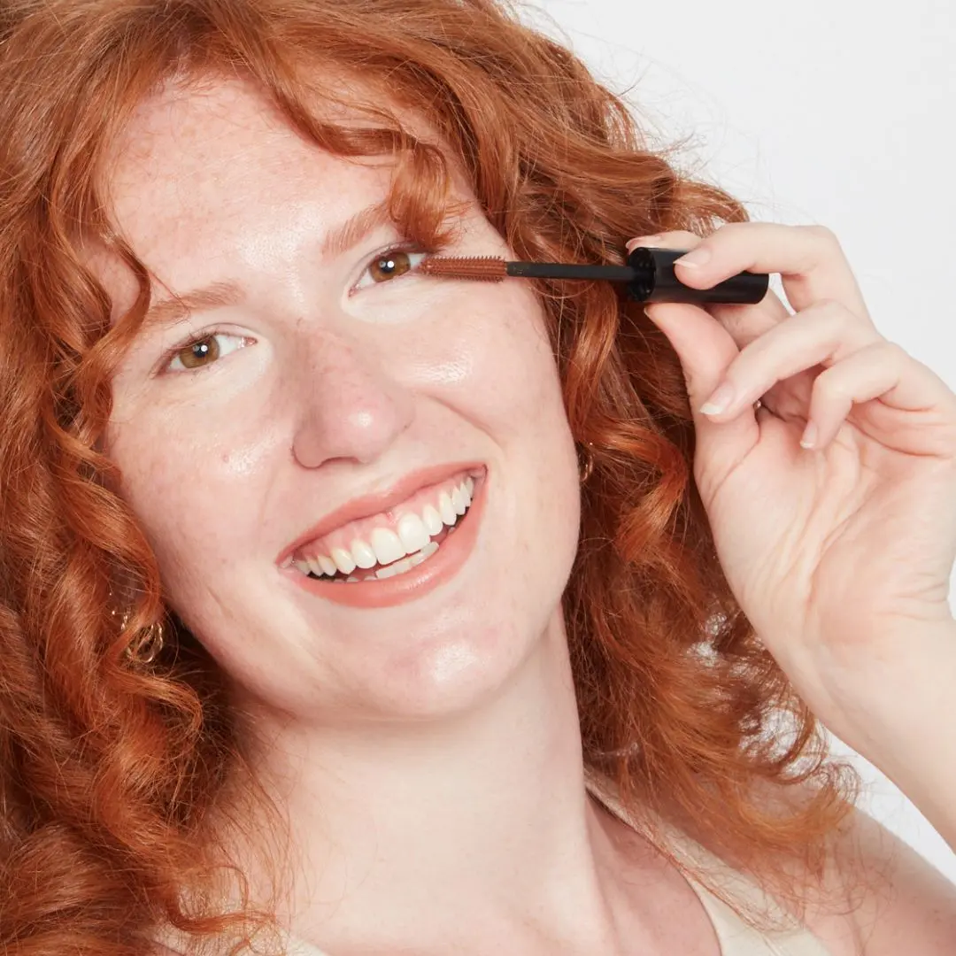 This formula and brush are optimized with new technology to glide through lashes without clumping, separating and coating them with a flake-free & sensitive-friendly formula. Designed to be gentle on lashes and sensitive eyes. Formulated with sensitive redheads in mind. Made without alcohol, gluten, GMOs, oil, parabens, phthalates, silicones, or talc.