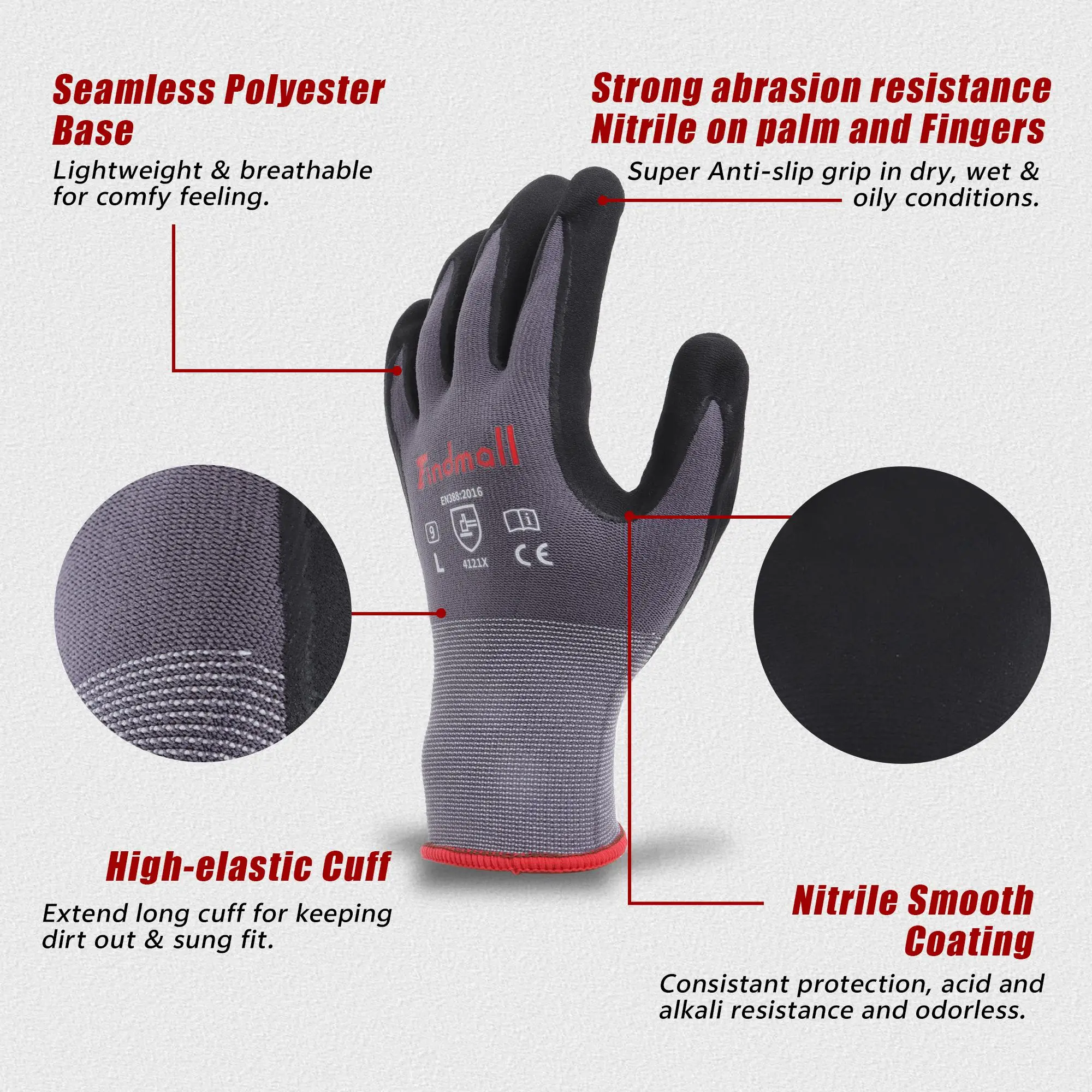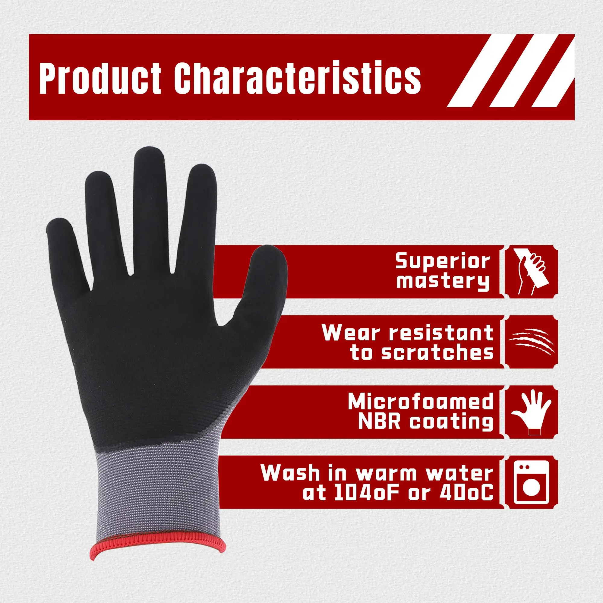The palm of the work gloves is designed with immersion glue to increase friction, provide better grip, and be more sturdy.