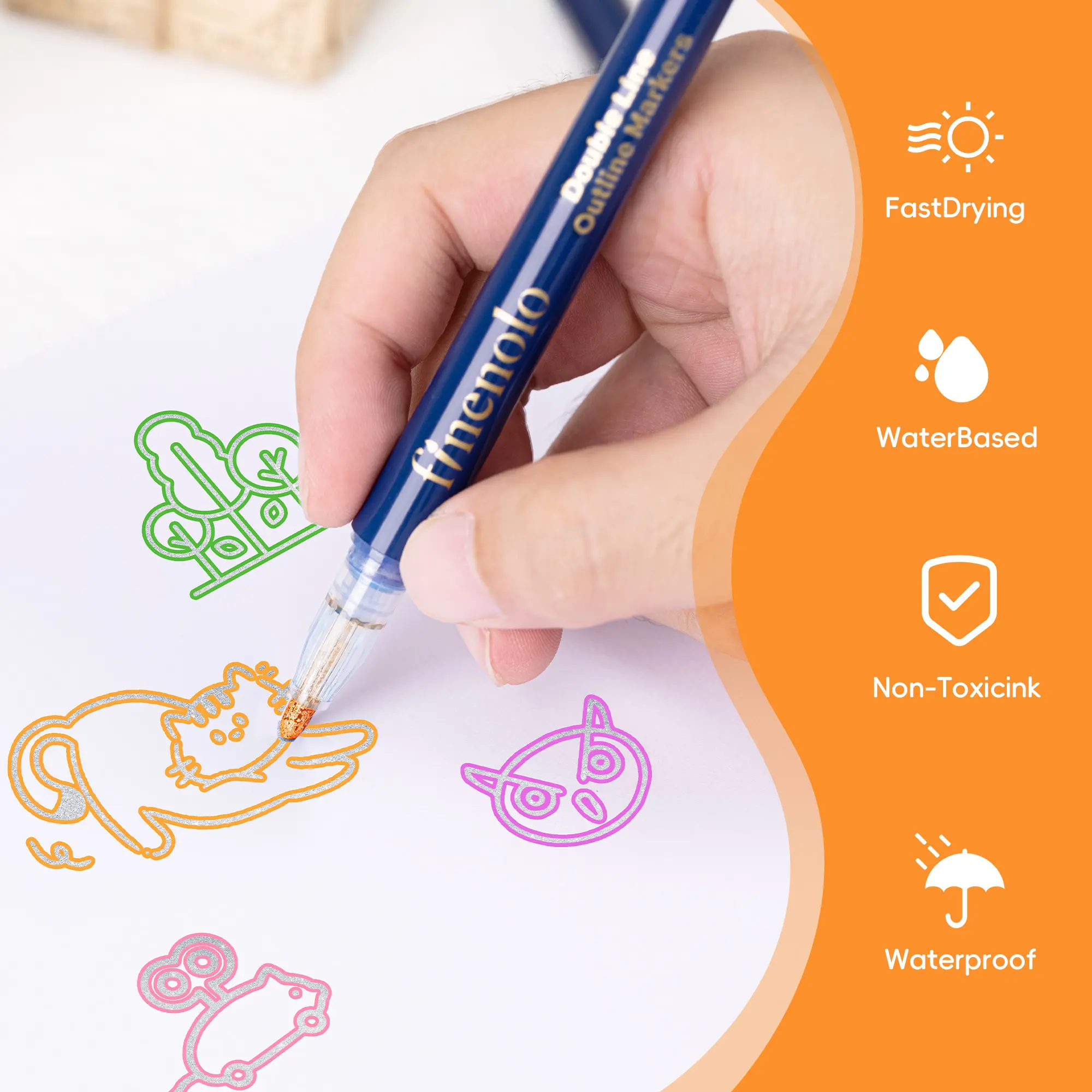 Unleash creativity with our innovative Outline Shimmer Markers! Featuring advanced dual-line technology, each marker creates stunning visual effects: