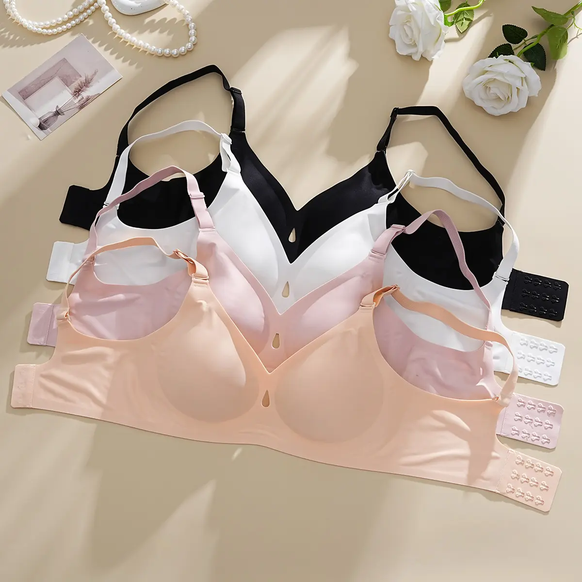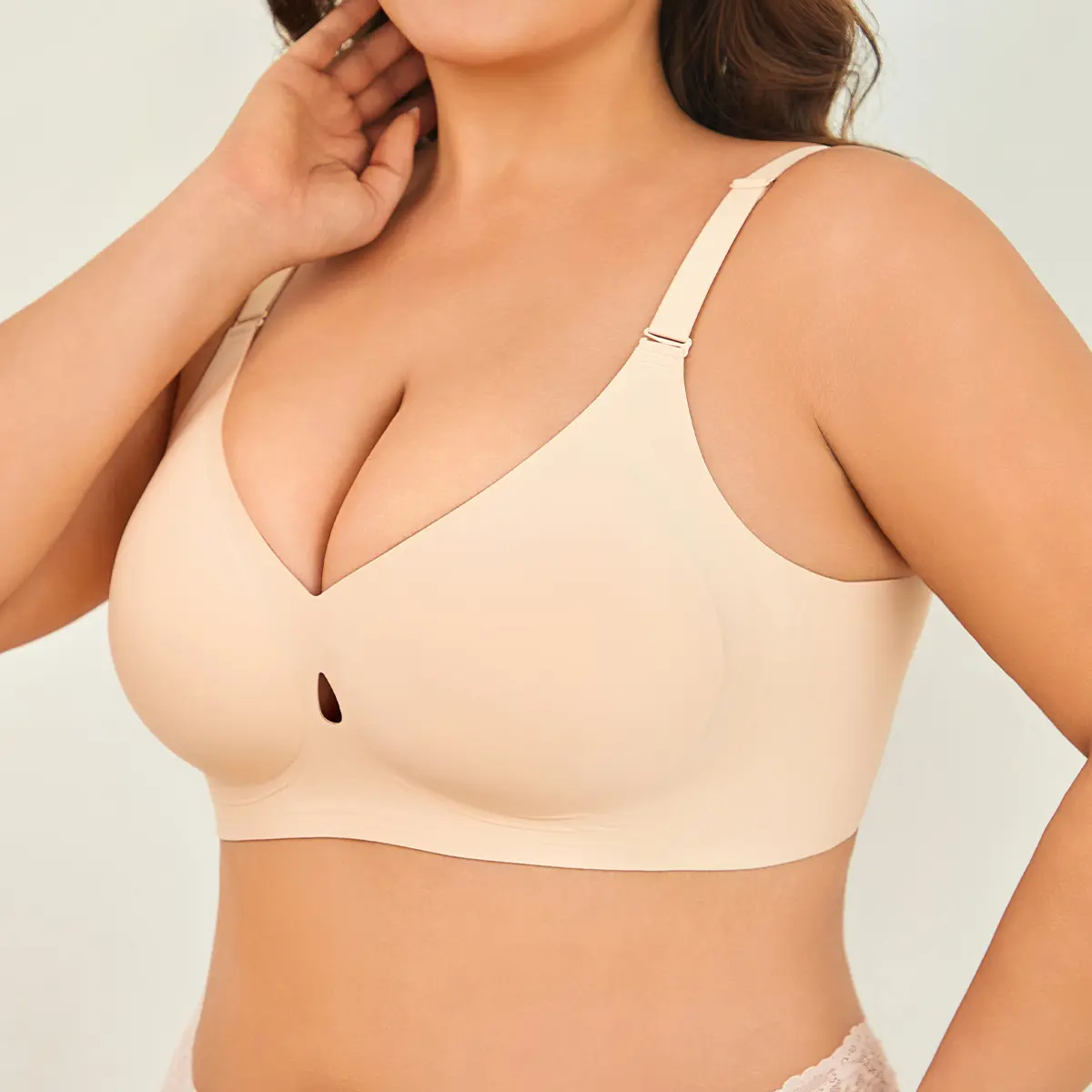 V-neck, wire-free padded support provides an elegant natural lift with no visible lines—most users say it “feels like a warm hug.”