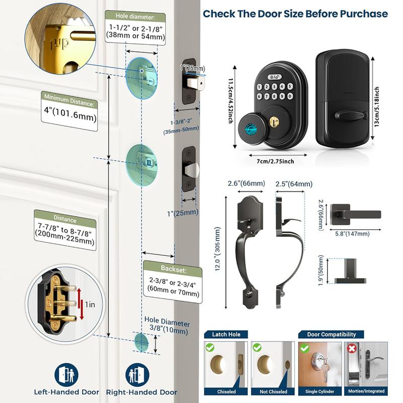 Valentine's Day Gift Fingerprint Door Lock Set, Keyless Entry Door Lock, Front Handle Set, Electronic Keypad Deadbolt with Lever Handle, 2 Keys, Auto-Locking, One-time Codes, Easy to Install, Matte Black FathersDayGift