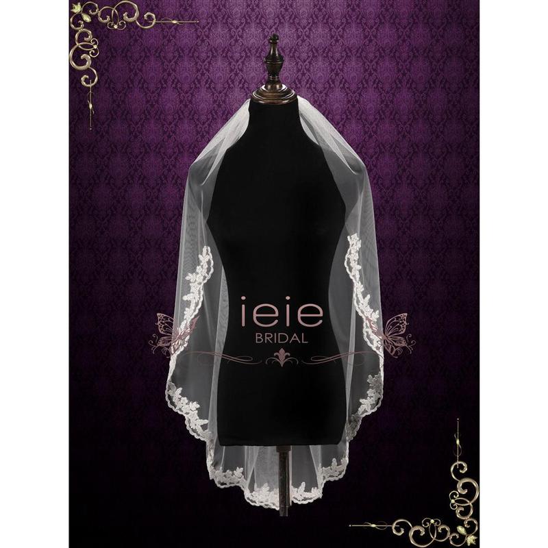 Short Elbow Length Veil with Floral Lace Edges VG1087
