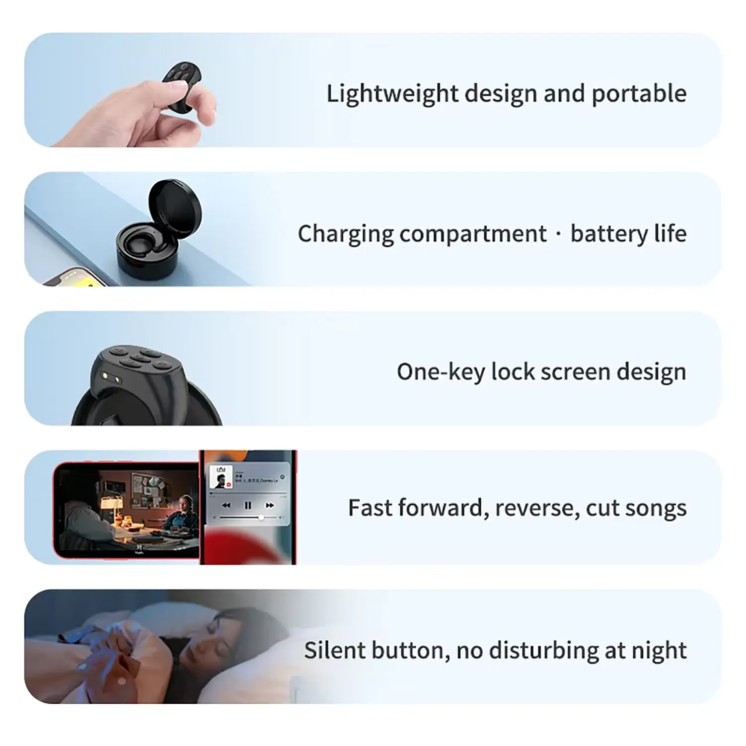 ·【Bluetooth-Compatible Connection】: Phone scrolling ring Using Bluetooth-compatible connection, the remote control distance can reach 10 meters, easy to match, and stable operation