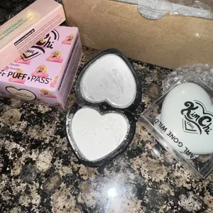 The packaging is super cute !! Matte black heart 🖤 the powder is amazing to use. I have dry skin but this made my under eye amazing.