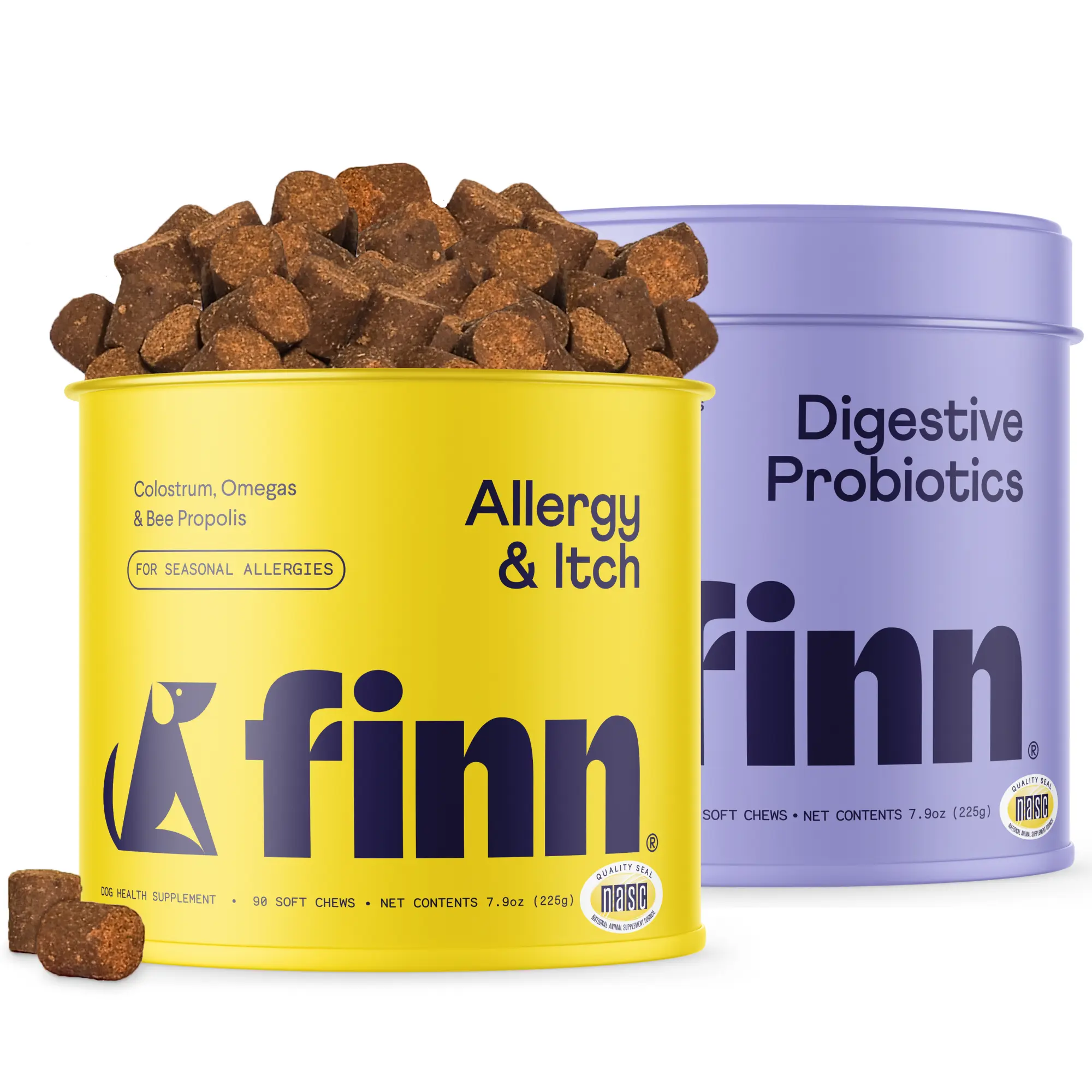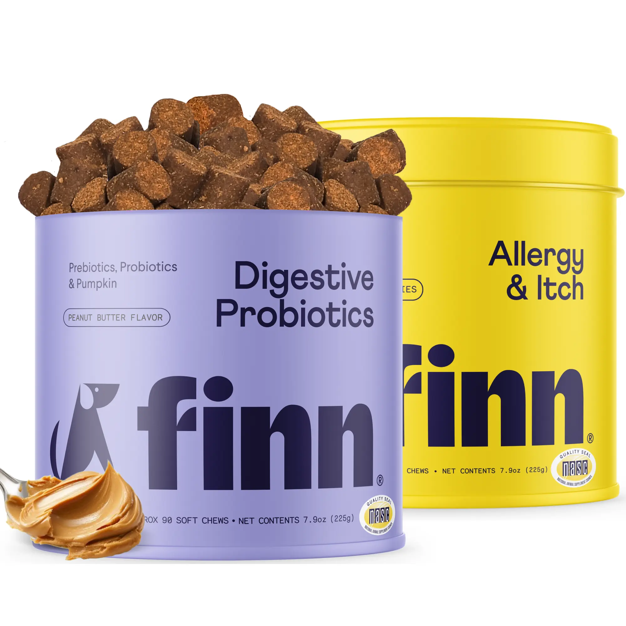 The FINN Comfy Pup Bundle is your dog’s daily duo for gut health and allergy relief. It includes 90 chews of Digestive Probiotics and 90 chews of Allergy & Itch, supporting healthy digestion, reducing itching, and strengthening immune defenses. Perfect for dogs with sensitive stomachs, allergies, or skin irritation.