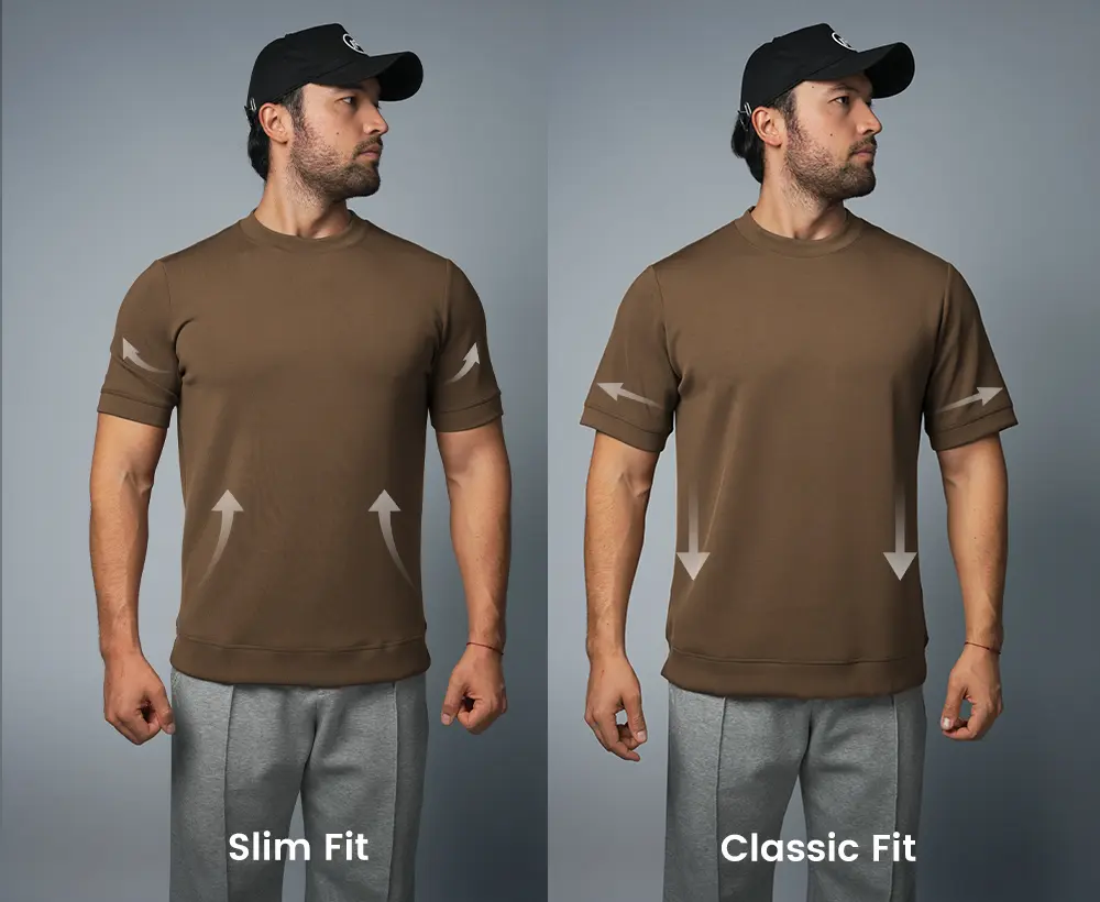 Classic Fit: Slightly looser cut, more casual and comfortable, with more room in the chest and waist, allowing you to feel relaxed and at ease. If you prefer more freedom of movement, the Classic Fit is your perfect choice.