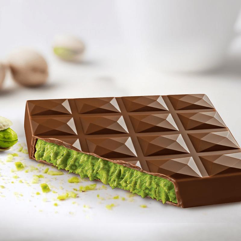 ·Encased within, a crispy layer of pistachio bits awaits—a dual satisfaction upon each bite, a symphony of silkiness and crunchiness in every chew.