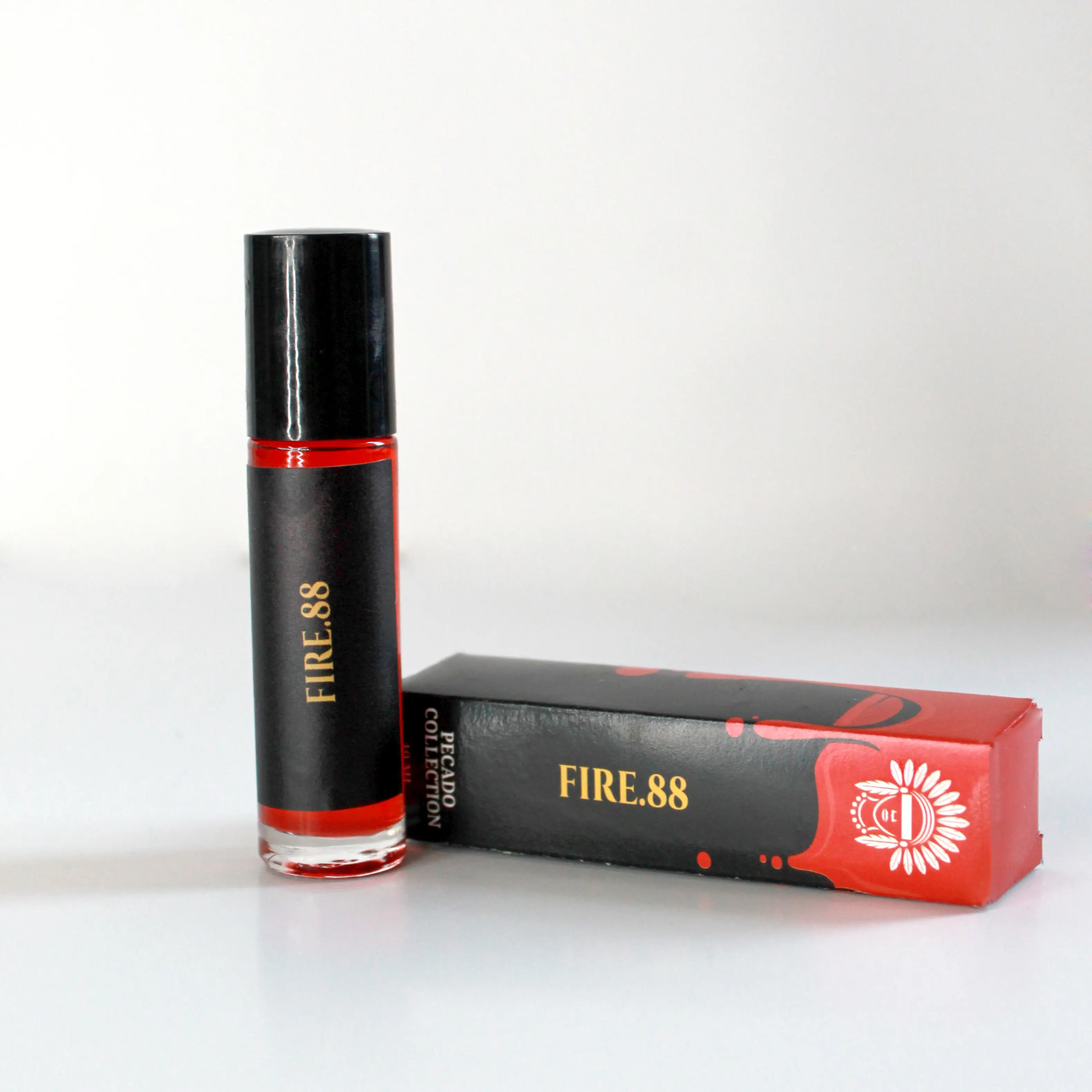 FIRE.88 is a bold 10 ML pheromone botanical oil blend from the Pecado Collection, created for men. This powerful body oil features an intense and striking fragrance, blending warm spices, deep amber, and subtle woody notes. Crafted for daily wear, FIRE.88 embodies confidence and energy, leaving a memorable presence wherever it is worn.