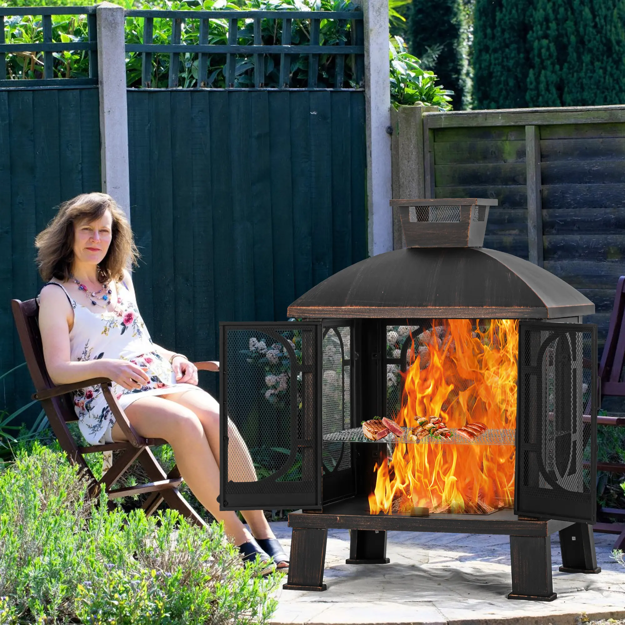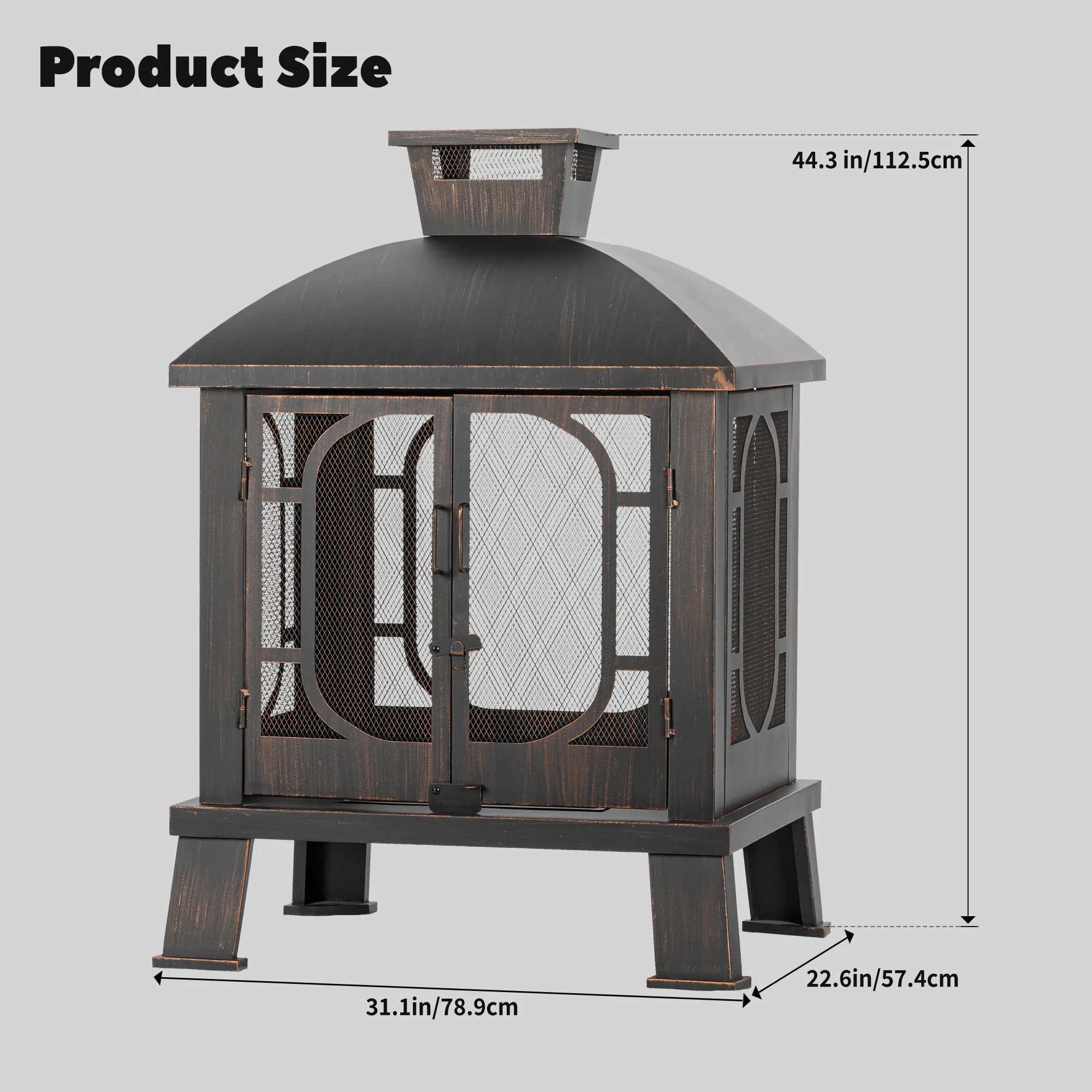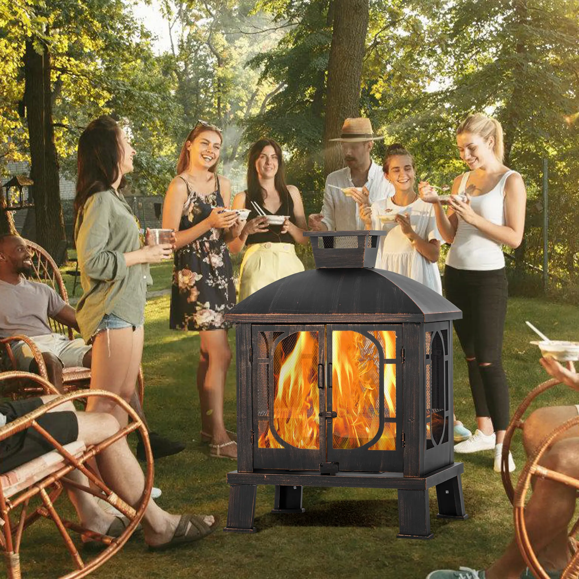 Unleash the Magic of Fire Pits Transform your outdoor space with this stunning fire pit, blending the charm of traditional fire pits with the elegance of outdoor fireplaces. Its square pagoda design, adorned with a vintage golden coating, adds a touch of sophistication to any gathering.