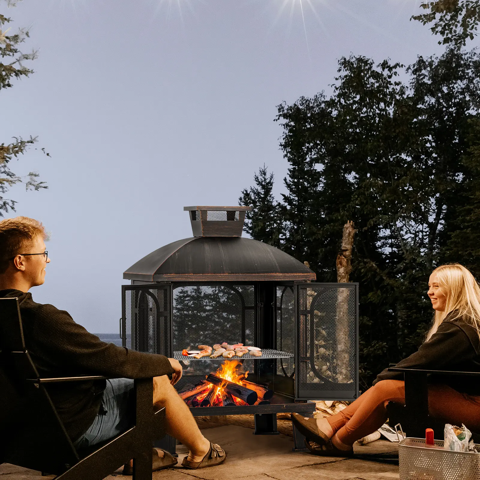 Elevate Your Gatherings Enhance your outdoor events with a versatile fire pit that effortlessly transitions between a campfire and a barbecue. Whether warming up a chilly evening or hosting a lively BBQ, this fire pit is perfect for any occasion.