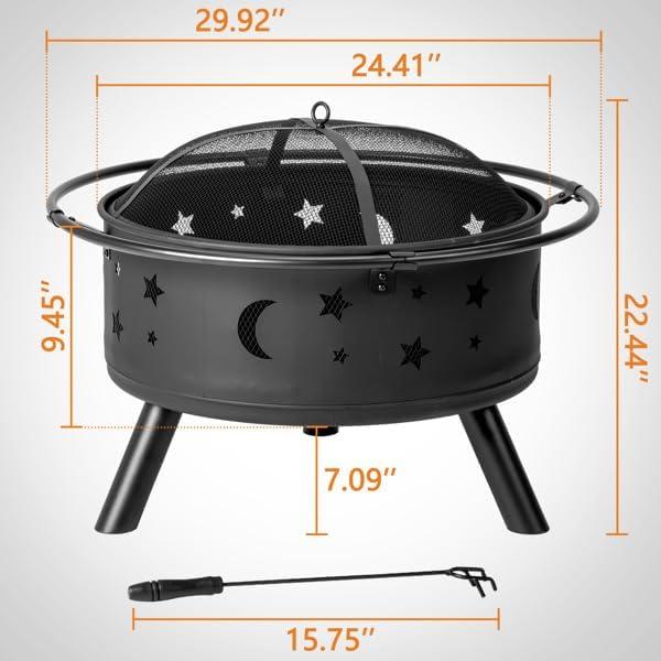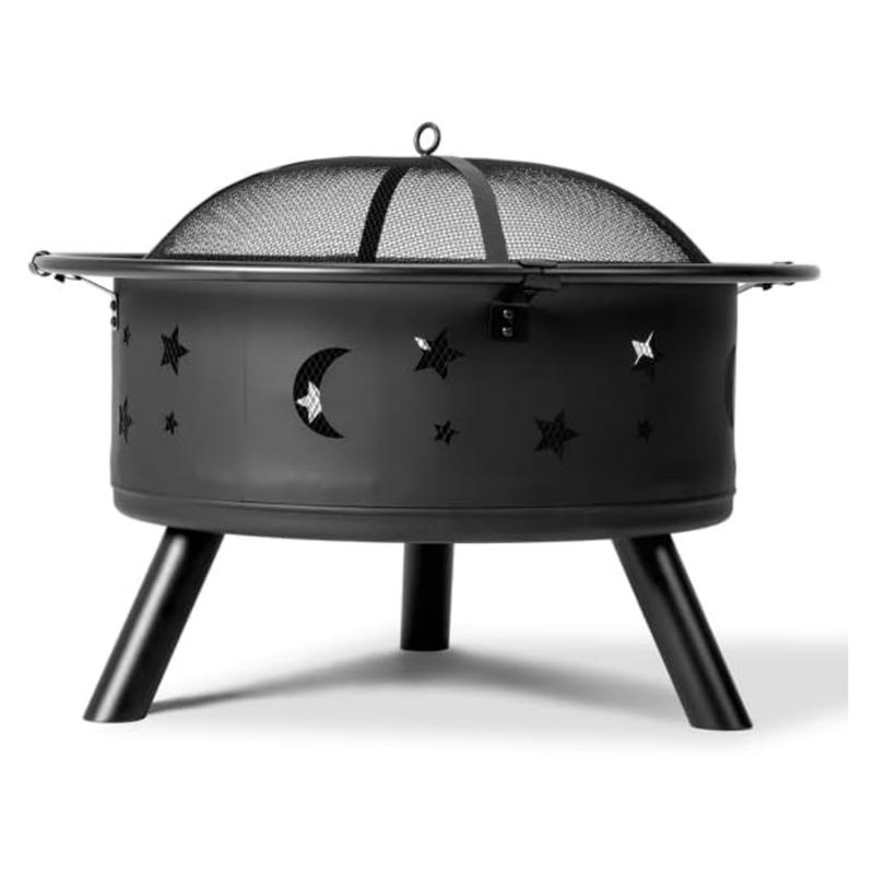 This 30-inch outdoor fire pit perfect to fit many people around for a bonfire in the patio, yard or garden. It’s an ideal blend of modern design and natural elements with beautiful star and moon cutouts.