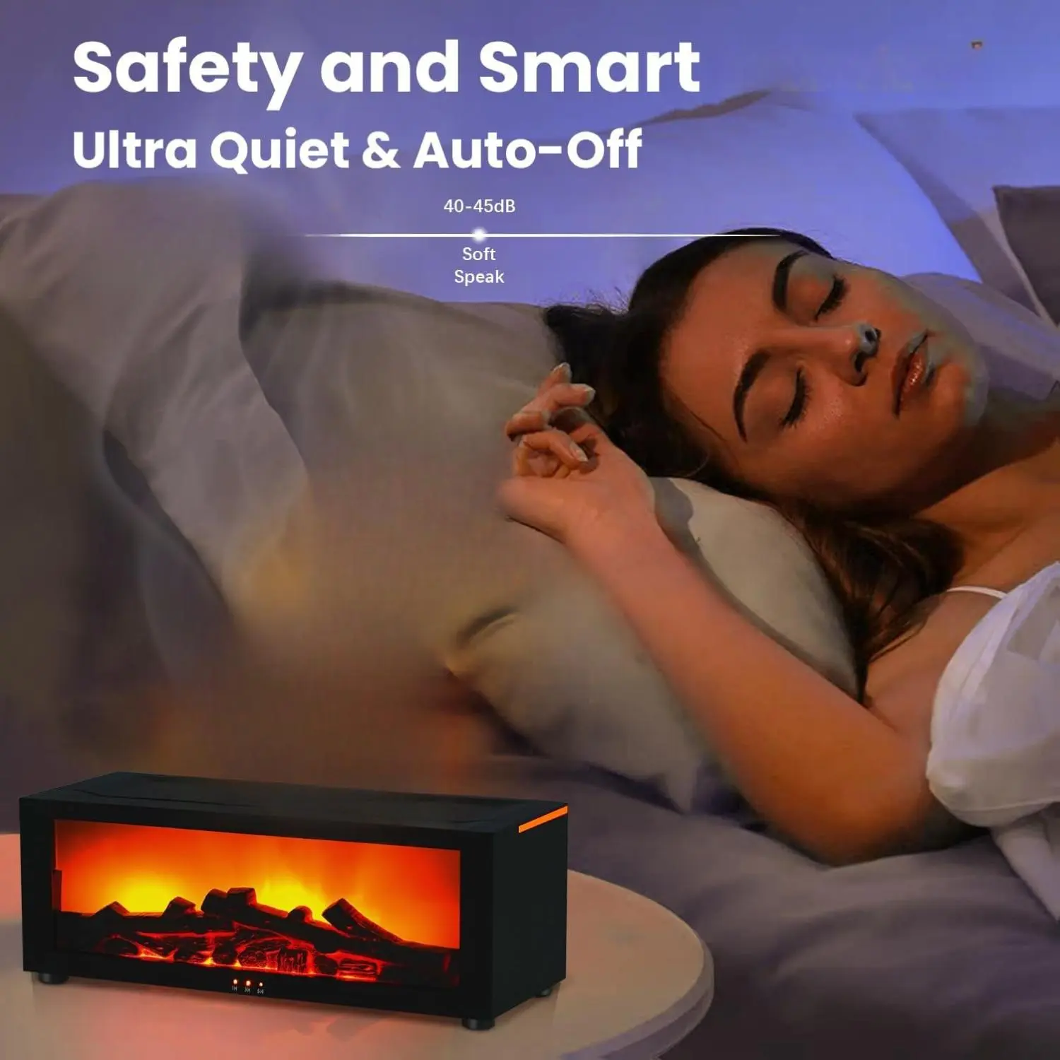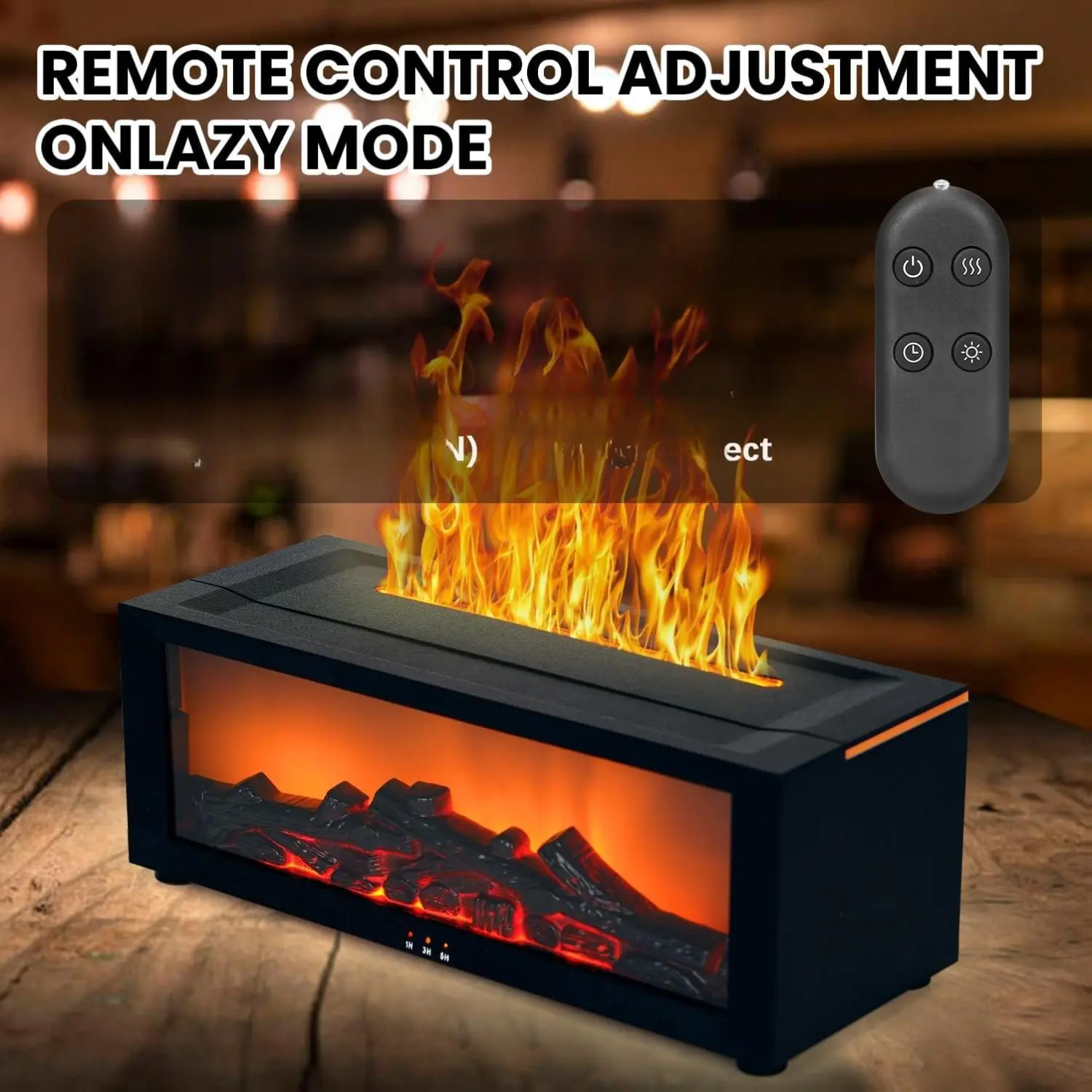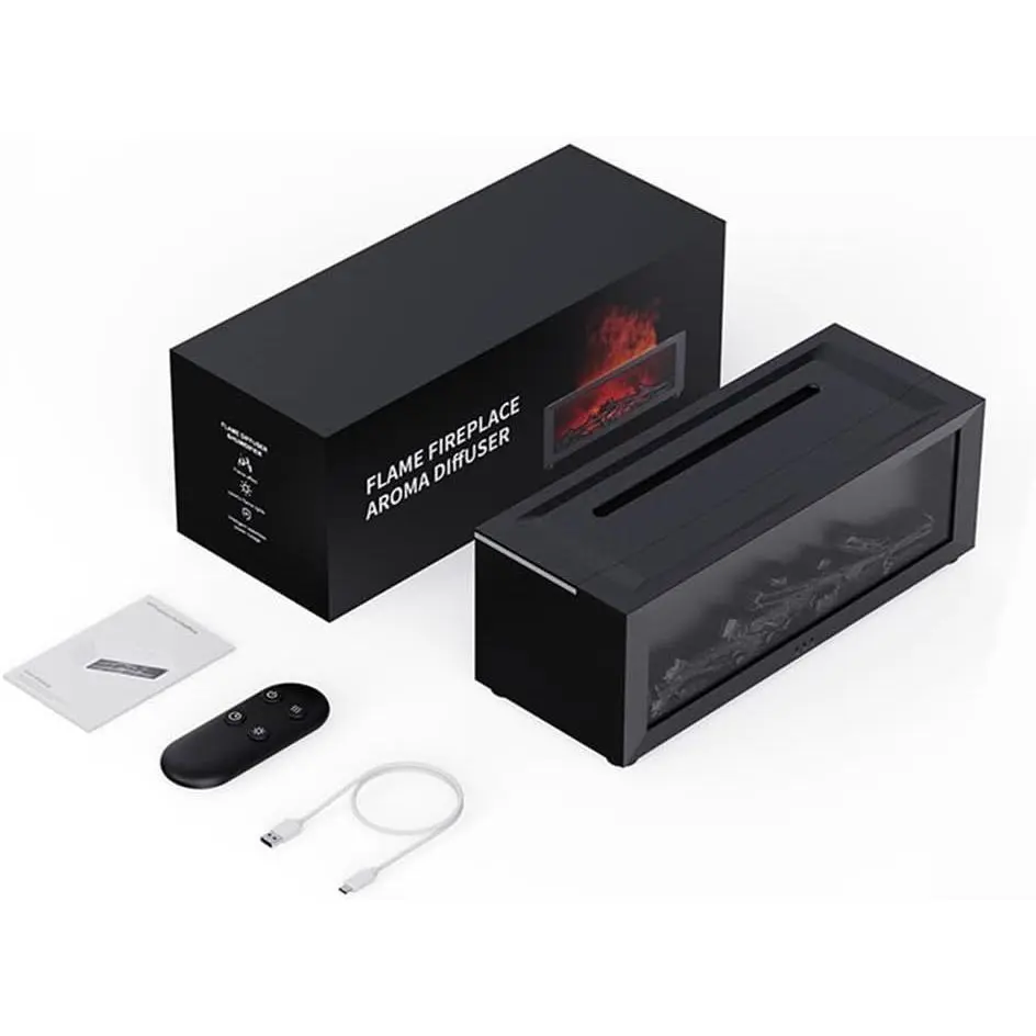 4-in-1 Ultrasonic humidifier & Aromatherapy Oil diffuser with realistic flame effect and 7-color night light, creates a realistic flame effect, as if a warm flame is burning right in nt. Add 3-5 drops of your favorite essential oil to relieve fatigue and moisturize the skin.