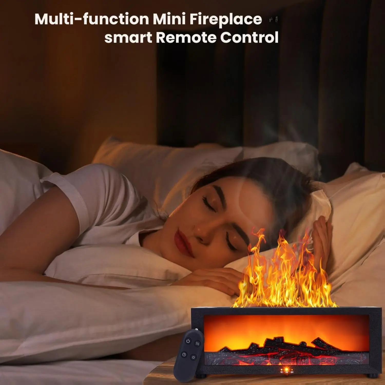 The fireplace flame diffuser featuring seven-color cycling, breathing, single-color fixation, and two sound reactive effects. ambient light, and the fog light, ambient light and fireplace light can work independently. You can freely choose according to your preferences!