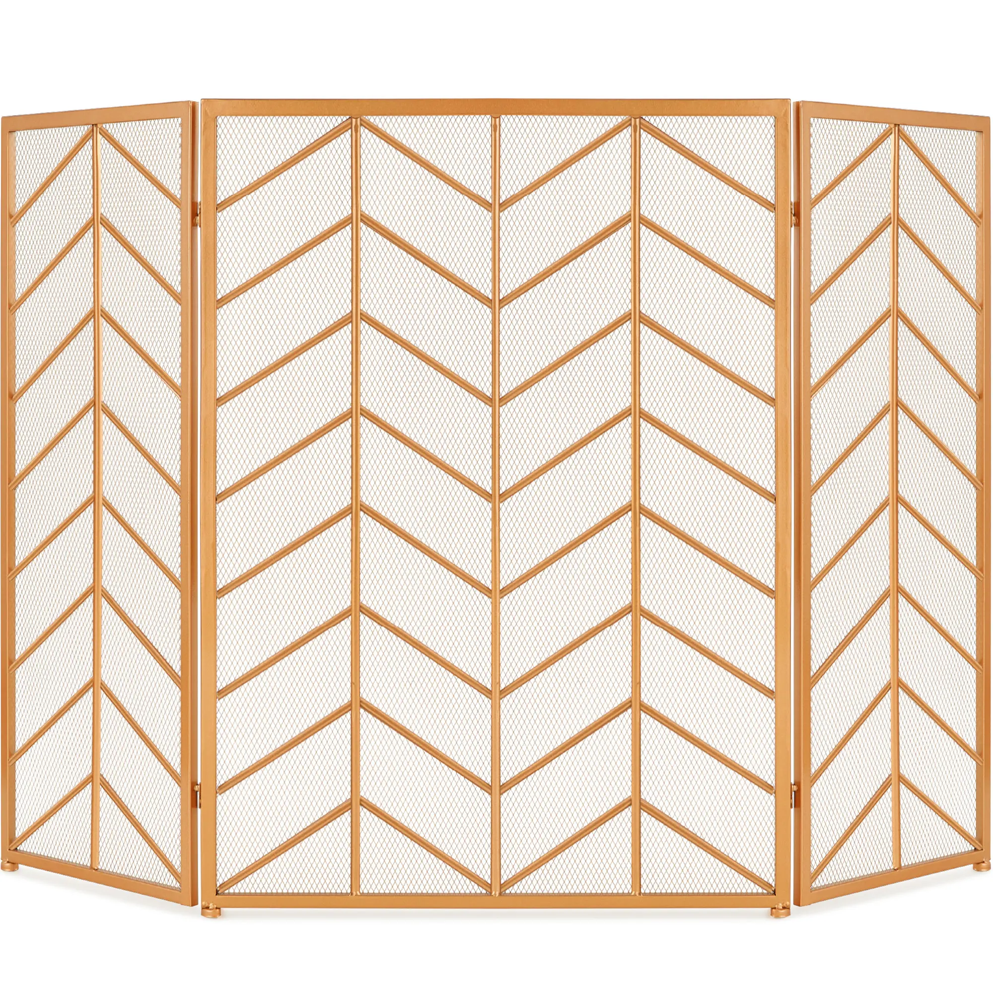 CHEVRON FIRE SCREEN: This screen features a series of angled iron bars set in a mid-century modern chevron pattern to add timeless style to your fireplace