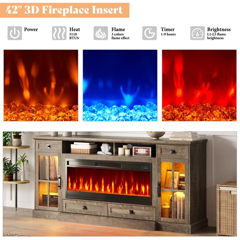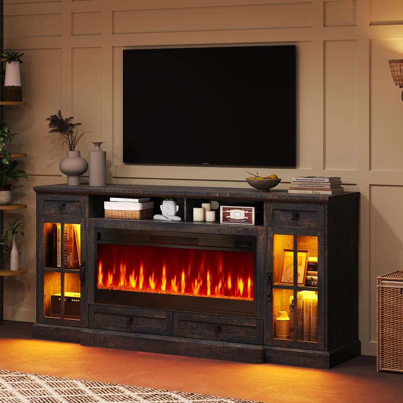 ·Farmhouse Focal Point: This 70" TV stand in rustic oak boasts rich grain and classic details, providing stylish storage. Pair it with the 42" fireplace for a functional entertainment area.
