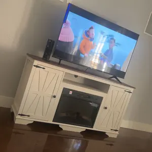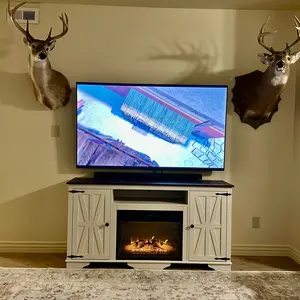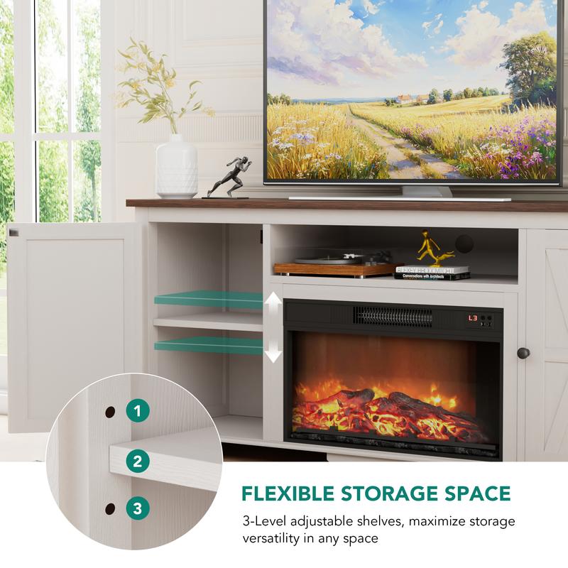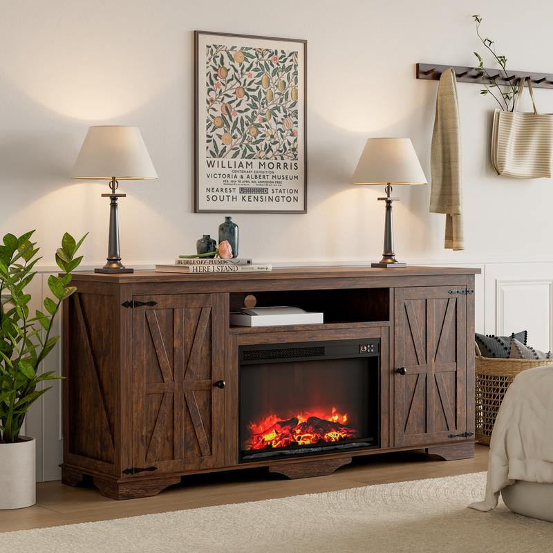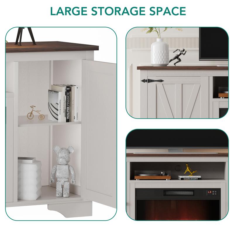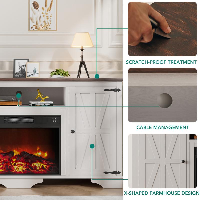 【Classic Barn-Style Design】: This fireplace TV stand blends rustic charm with modern functionality, adding a unique decorative highlight to your home. It can perfectly complement various interior styles, creating a warm and inviting living space.