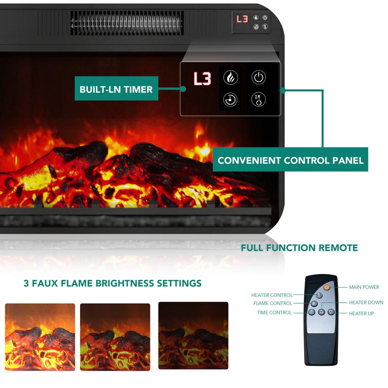 【Adjustable Flame Effects & Convenient Control】: With three brightness settings and a timer function, you can easily adjust the ambiance to create a warm and cozy atmosphere. The built-in control panel and included remote make operation simple, allowing you to effortlessly set the heating duration of the electric fireplace.