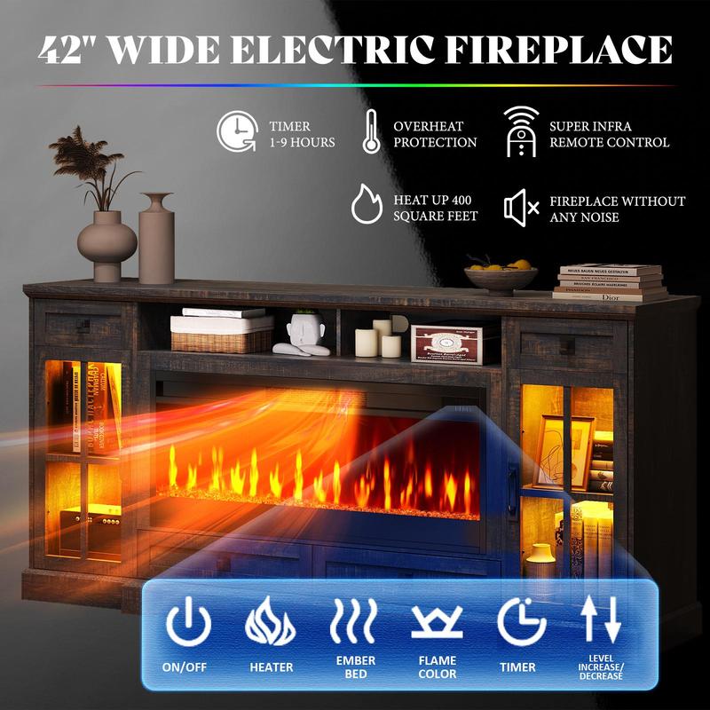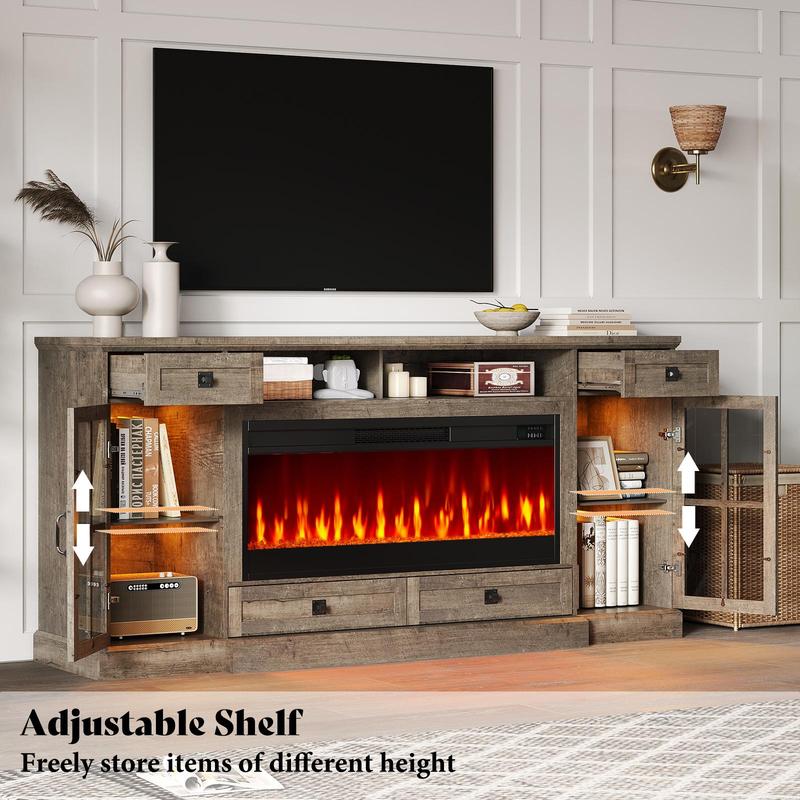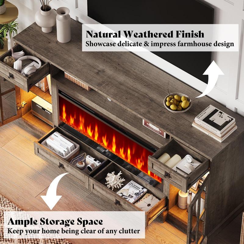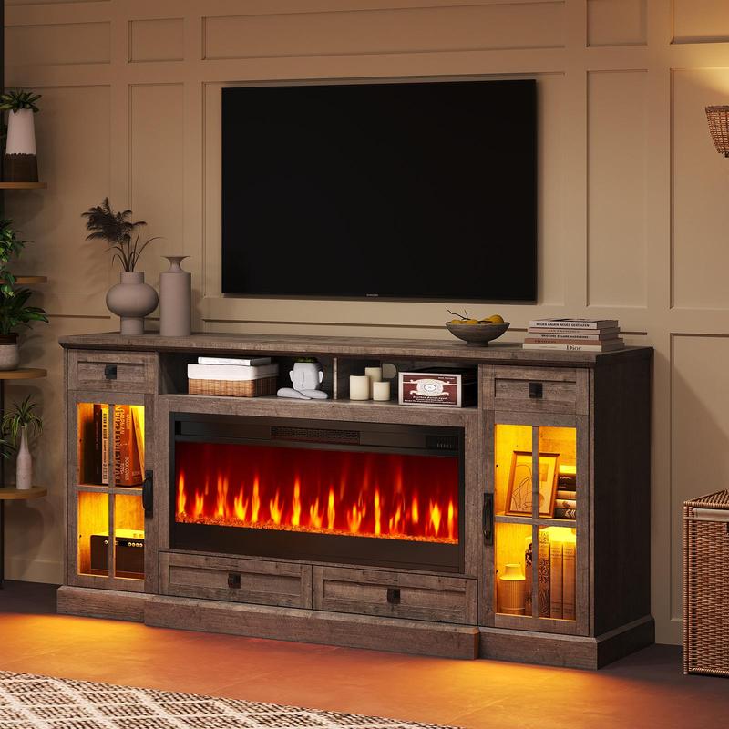 ·Farmhouse Focal Point: This 70" TV stand in rustic oak boasts rich grain and classic details, providing stylish storage. Pair it with the 42" fireplace for a functional entertainment area.