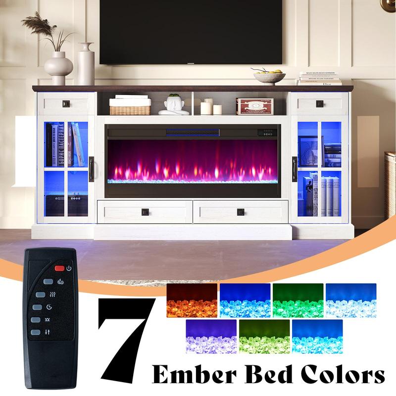 ·Better Customized Ambiance:Enjoy 7 adjustable flame colors and LED lighting for the ember bed and cabinets, creating a captivating atmosphere. Control everything easily with a remote.
