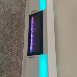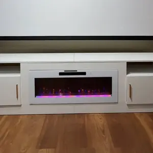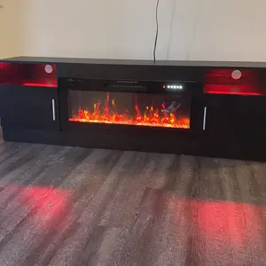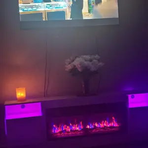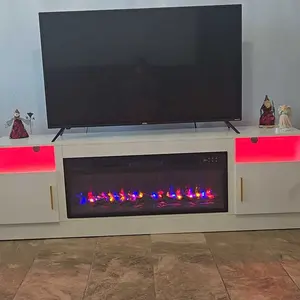 ·[Energy Saving and Elegant Electric Fireplace] The TV cabinet is equipped with a 36” electric fireplace and a remote control. There are 750W and 1500W modes that can be adjusted, which are both warm and energy-saving. The heating area can reach 400 square feet, and the noise level is below 40db. It can be set to a 1-8 hour timer. 3D realistic flame effects can be displayed with or without heating to create a warm atmosphere.